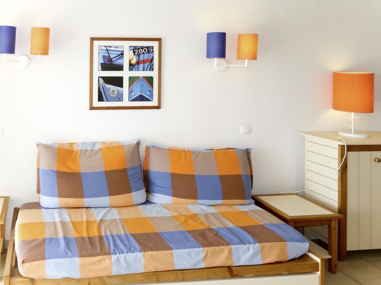 "Catalana", 2-room apartment 50 m2. Object suitable for 6 adults + 1 child. Beautiful furnishings: living/sleeping room with 2 sleeping facilities, dining table and TV. Exit to the balcony, to the terrace. 1 room with 2 sleeping facilities. Alcove with 1 x 2 bunk beds. Kitchenette (dishwasher, 2 ceramic glass hob hotplates, combination microwave).