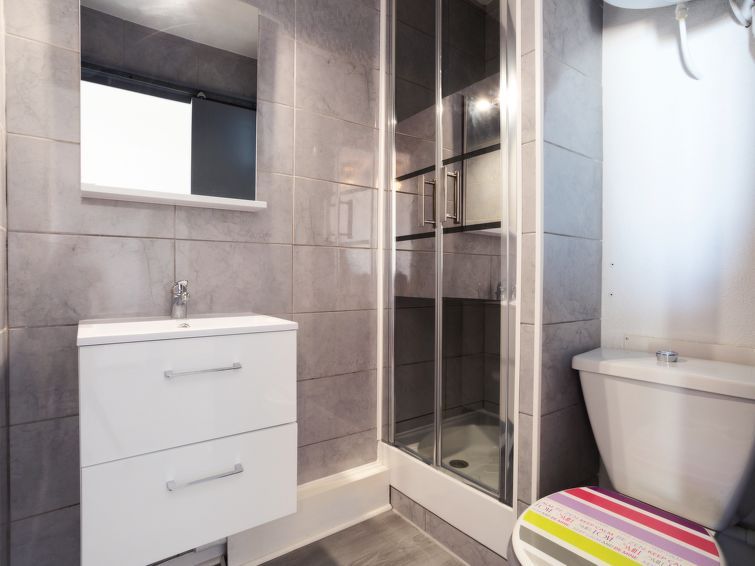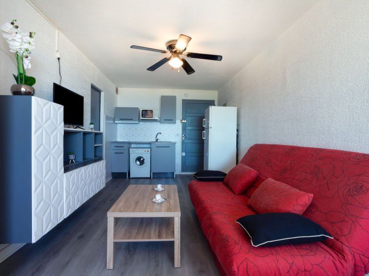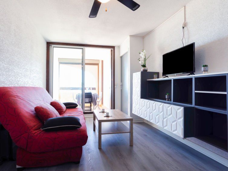 2-room apartment 25 m2 on 1st floor with 1 sofabed (140 cm, length 190 cm), TV (flat screen). Exit to the terrace. 1 room with 1 sofabed (140 cm, length 190 cm). Kitchenette (2 ceramic glass hob hotplates, toaster, kettle, microwave, electric coffee machine) with fan. Shower/WC. Electric heating, air-conditioning.