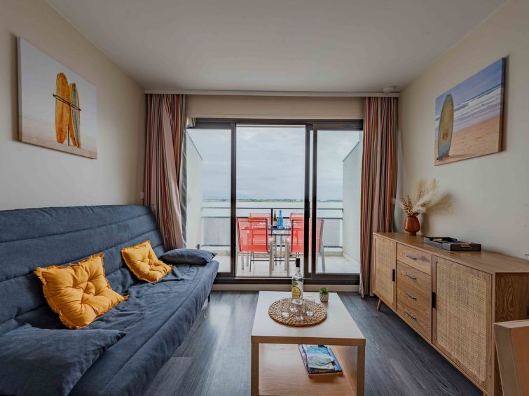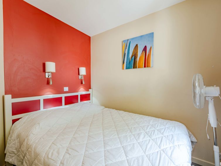 2-room apartment 23 m2 on 3rd floor, south-east facing position. Living/dining room with 1 double sofabed (1 x 140 cm, length 190 cm), TV (flat screen). Exit to the terrace. 1 room with 1 french bed (1 x 140 cm, length 190 cm). Open kitchen (2 hot plates, dishwasher, toaster, kettle, microwave, electric coffee machine).