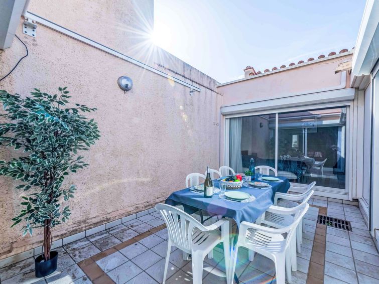 2-room house 61 m2, on the ground floor. Beautiful furnishings: living/dining room. 1 room with 1 french bed (1 x 140 cm, length 190 cm). Sleeping alcove with 1 x 1 bunk beds (80 cm, length 190 cm), 1 pull-out bed (2 pers. 2 x 80 cm, length 190 cm). (2 ceramic glass hob hotplates, toaster, kettle, electric coffee machine, combination microwave).