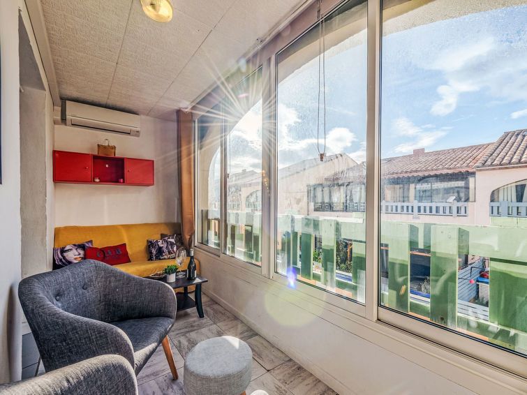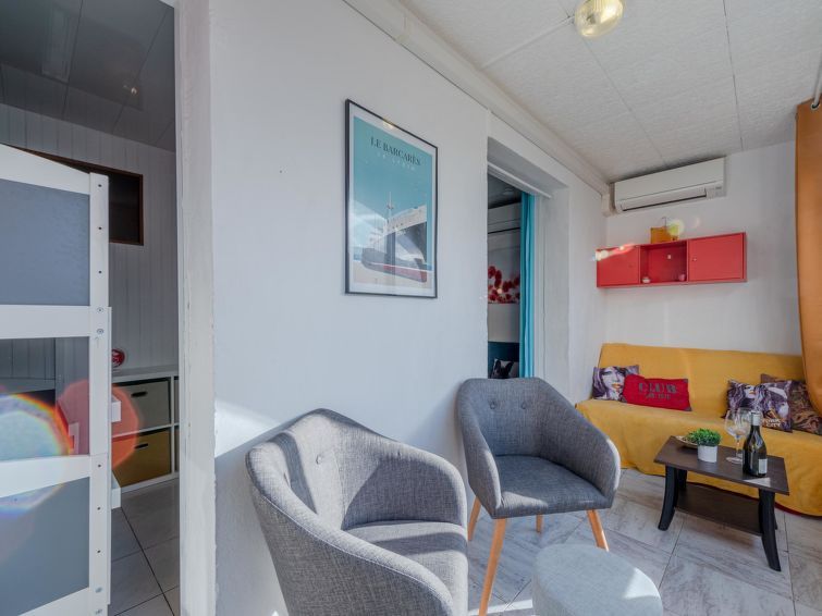 2-room apartment 30 m2 on 1st floor. Living/dining room. Exit to the loggia. 1 room with 1 french bed (1 x 140 cm, length 190 cm). Sleeping alcove with 1 x 2 bunk beds (90 cm, length 190 cm). Kitchenette (oven, 4 ceramic glass hob hotplates, toaster, kettle, microwave, electric coffee machine).