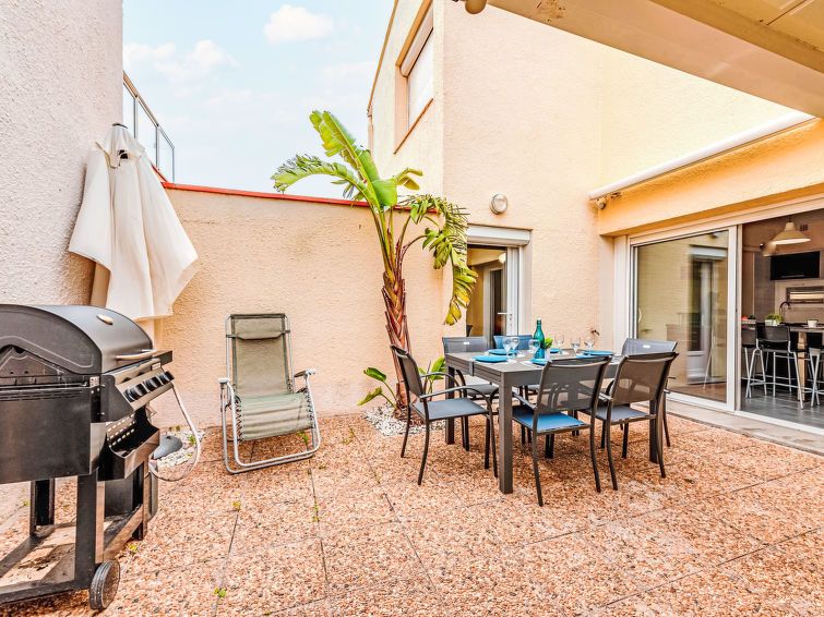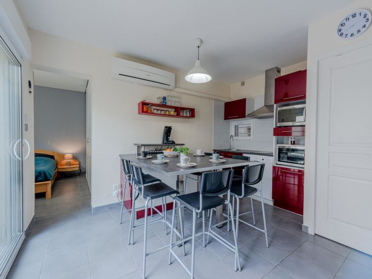 3-room apartment 42 m2, on the ground floor. Beautiful furnishings: living/dining room with TV (flat screen). Exit to the terrace. 1 room with 1 french bed (1 x 140 cm, length 190 cm). 1 room with 1 x 1 bunk beds (90 cm, length 190 cm), 1 french bed (1 x 140 cm, length 190 cm). Kitchenette (mini-oven, oven, 2 ceramic glass hob hotplates, toaster, kettle, microwave, electric coffee machine, cooking island).