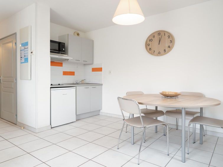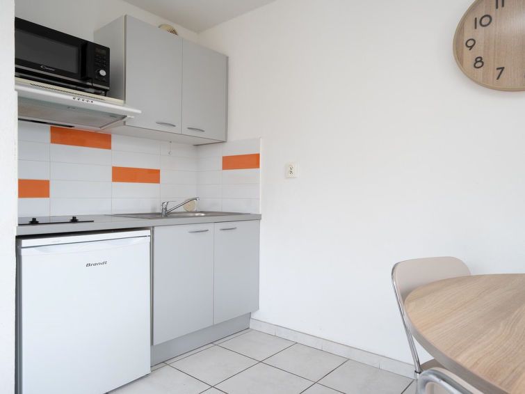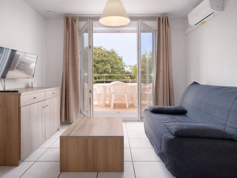 "Cap Camargue A", 2-room apartment 45 m2 on 1st floor. Object suitable for 4 adults. 1 room with 1 double bed and TV. Living room with 1 sofabed and 1 pull-out bed. Open kitchen (4 hot plates, toaster, kettle, microwave, freezer, electric coffee machine). Shower/WC. Balcony. Facilities: Internet (WiFi, free).