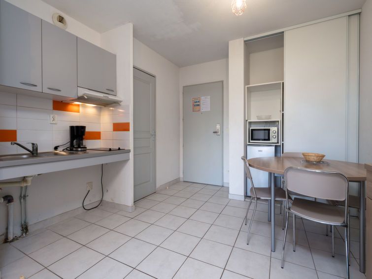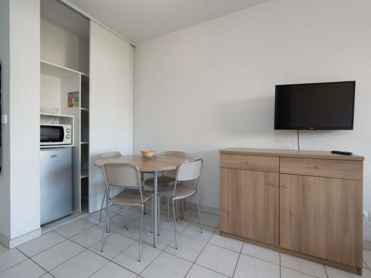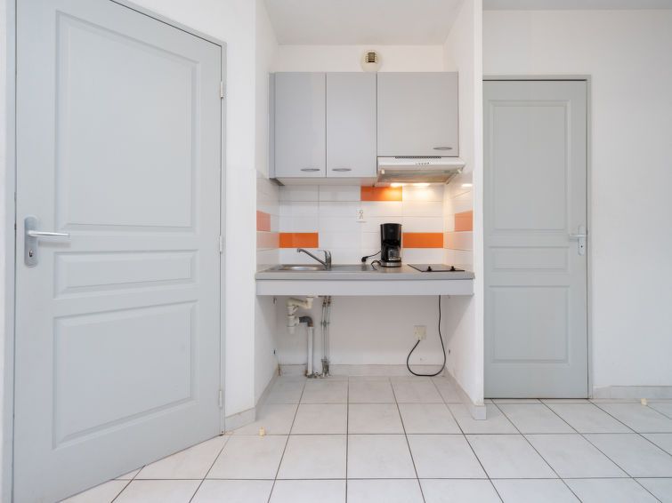 "Cap Camargue B N 26 - 2P4", 2-room apartment 40 m2, on the ground floor. Object suitable for 4 adults. 1 room with 1 double bed and TV. Living room with 1 sofabed and 1 pull-out bed. Open kitchen (4 hot plates, toaster, kettle, microwave, electric coffee machine). Shower/WC. Terrace.