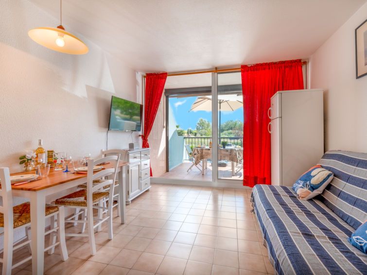 "Le Lagon Bleu", 1-room studio 27 m2, on the ground floor. Beautiful furnishings: living/dining room with 1 double sofabed (140 cm, length 200 cm), TV (flat screen). Entrance hall with 1 sofabed (120 cm, length 190 cm). Kitchenette (2 ceramic glass hob hotplates, toaster, kettle, microwave, freezer, electric coffee machine).