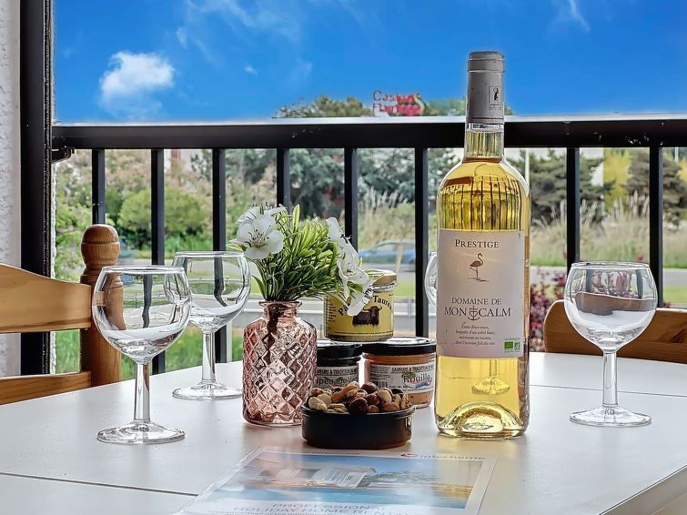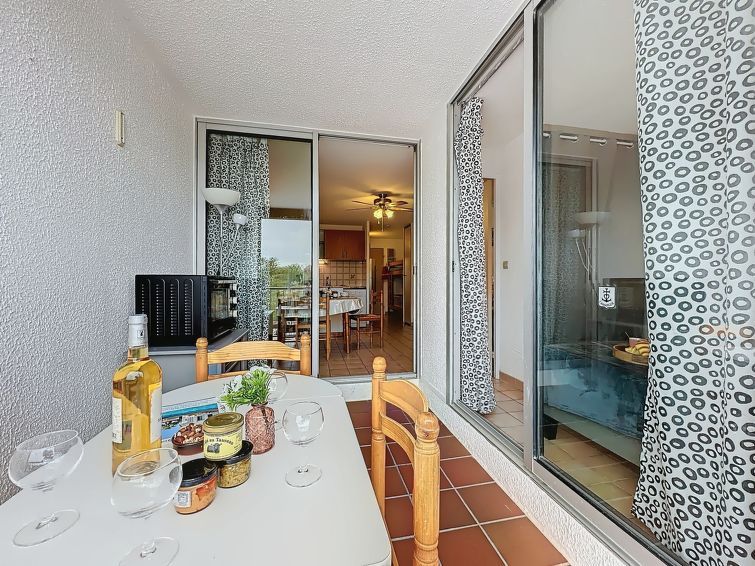 "Le Lagon Bleu", 2-room apartment 30 m2 on 1st floor. Living/dining room with TV (flat screen). 1 room with 1 french bed (140 cm, length 190 cm). Entrance hall with 1 x 2 bunk beds (80 cm, length 190 cm). Open kitchen (4 hot plates, mini-oven, oven, dishwasher, toaster, kettle, microwave, electric coffee machine).