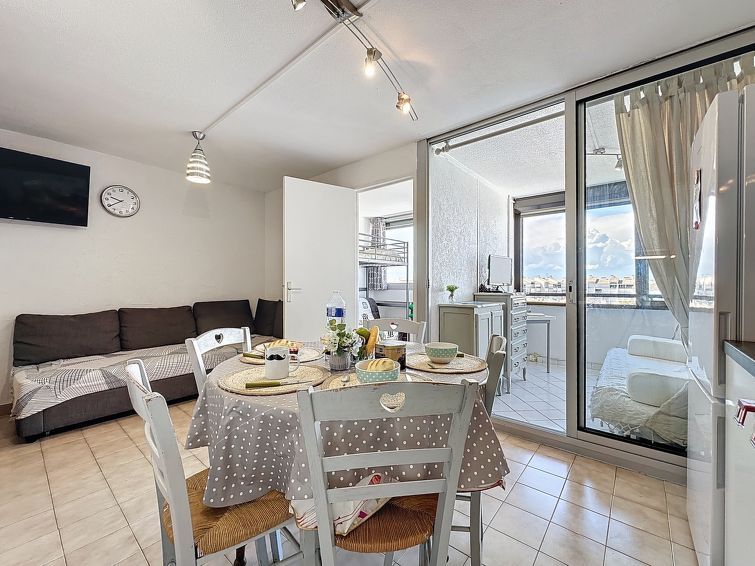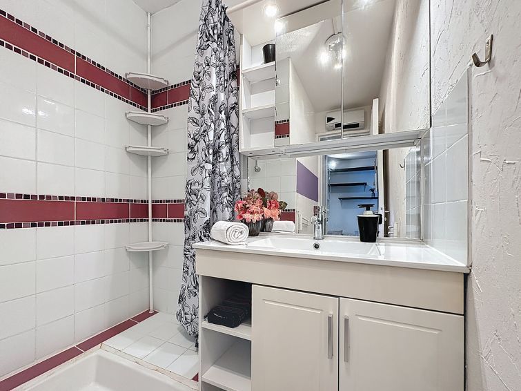 3-room apartment 36 m2 on 4th floor. Sleeping alcove with 1 sofabed (130 cm, length 190 cm). Living/dining room 15 m2 with dining table and TV (flat screen), air conditioning. 1 room with 1 double sofabed (140 cm, length 190 cm), 1 x 1 bunk beds (90 cm, length 200 cm). 1 room with sliding door curtain with 1 sofabed (140 cm, length 190 cm), TV (flat screen).