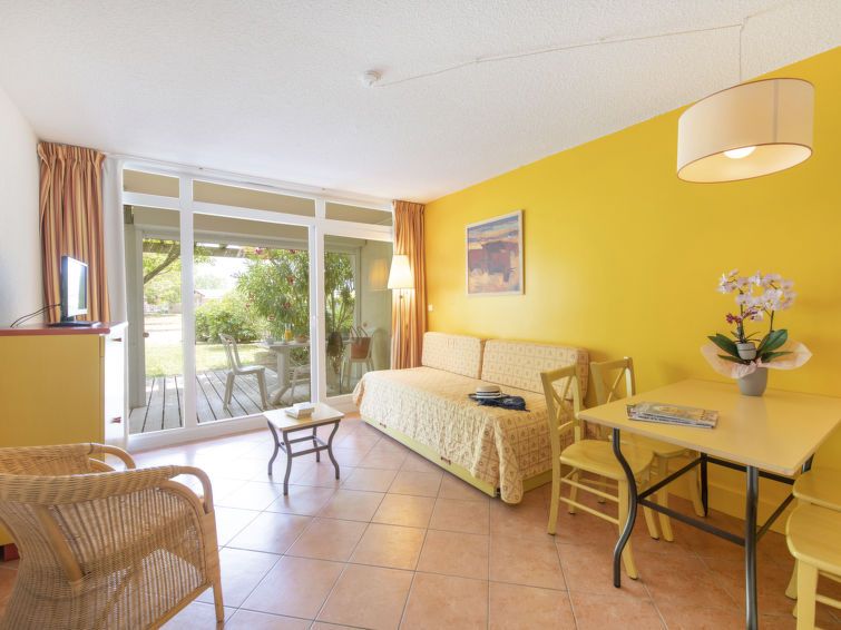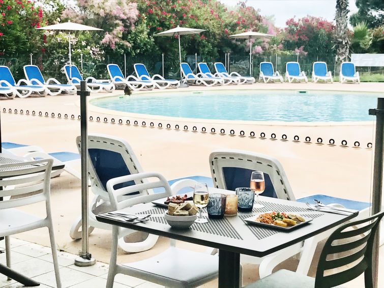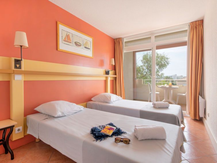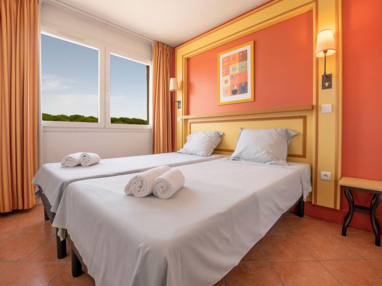 "Les Sablons", 3-room apartment 45 to 50 m2. Practical furnishings: living/sleeping room with 1 double sofabed (2 x 80 cm, length 190 cm), dining table and TV (flat screen). Exit to the balcony, to the terrace. 2 rooms, each room with 2 beds (90 cm, length 200 cm). Kitchenette (dishwasher, 2 ceramic glass hob hotplates, toaster, freezer, electric coffee machine, combination microwave).