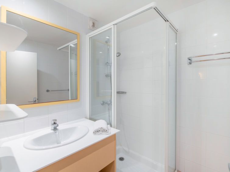 "Les Sablons", 2-room apartment 35 to 40 m2. Practical furnishings: living/sleeping room with 1 double sofabed (2 x 80 cm, length 190 cm), dining table and TV (flat screen). Exit to the balcony, to the terrace. 1 room with 2 beds (90 cm, length 200 cm). Kitchenette (dishwasher, 2 ceramic glass hob hotplates, toaster, freezer, electric coffee machine, combination microwave).