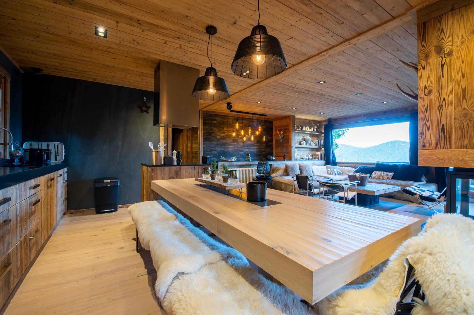 There's something ultra-cosy and homely about the design, which embraces all the traditional features you might expect to see in a home such as this – we're talking an abundance of wood, soft lighting and a few antler-themed decorative items. That being said, it's modern where it matters, particularly the sleek black kitchen and bathrooms.