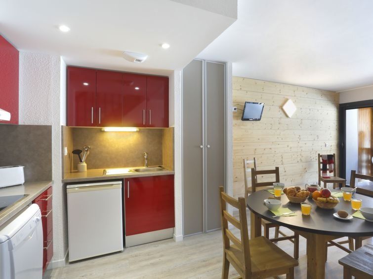 "La Soulane", 1-room apartment 25 m2. Living/sleeping room with 1 double sofabed (2 x 90 cm, length 190 cm), dining table and TV can be hired (flat screen). Exit to the balcony, to the terrace. Kitchenette (2 hot plates, dishwasher, 2 ceramic glass hob hotplates, toaster, kettle, microwave, electric coffee machine).