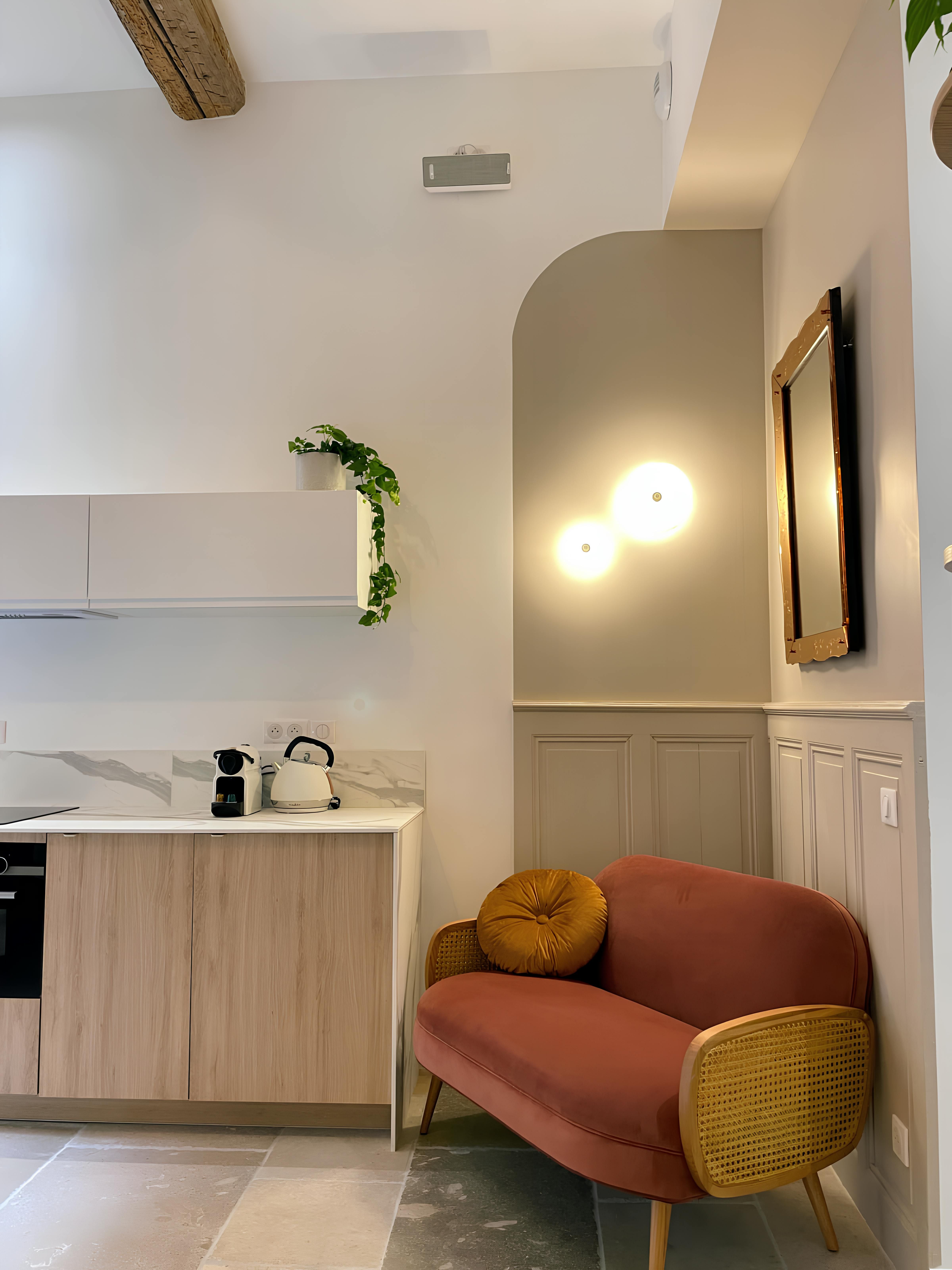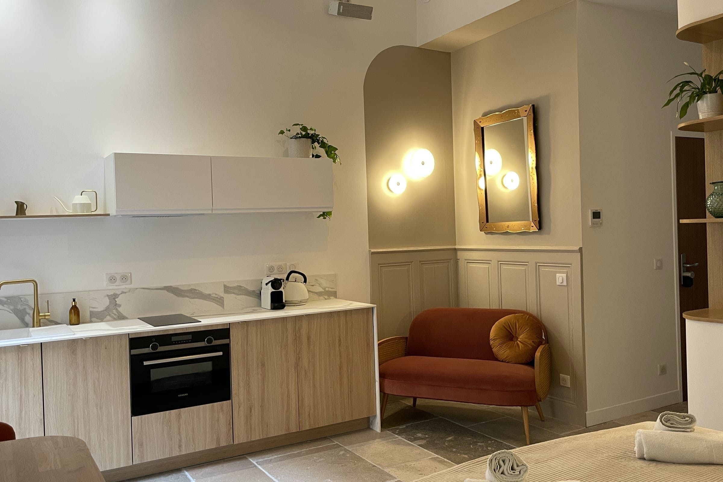 This stylish apartment is in the heart of Montpellier, just four minutes from the Place de la Comédie and a few steps from the daily Halles Laissac market. The train station is two minutes away. The apartment is cosy and romantic, with a dreamy bathtub for indulgent soaks. The decor is attractive, particularly in the bedroom. If you fancy a day at the beach, you need only drive fifteen minutes to the sands of Palavas-les-Flots and La Grande Motte.