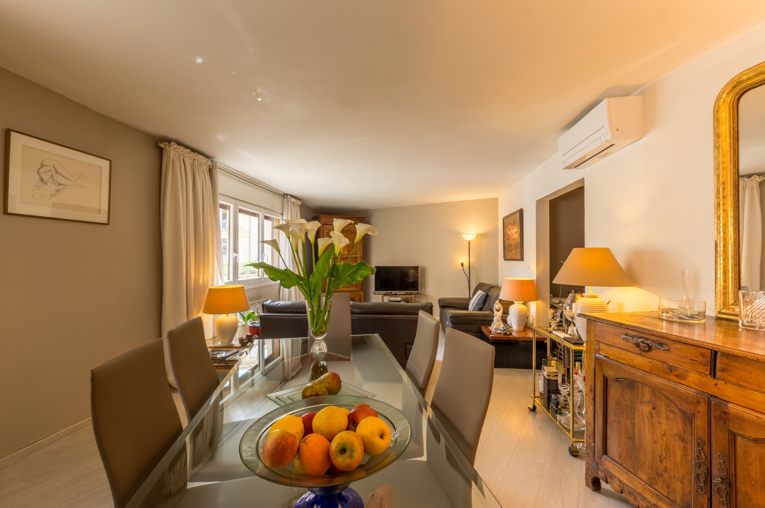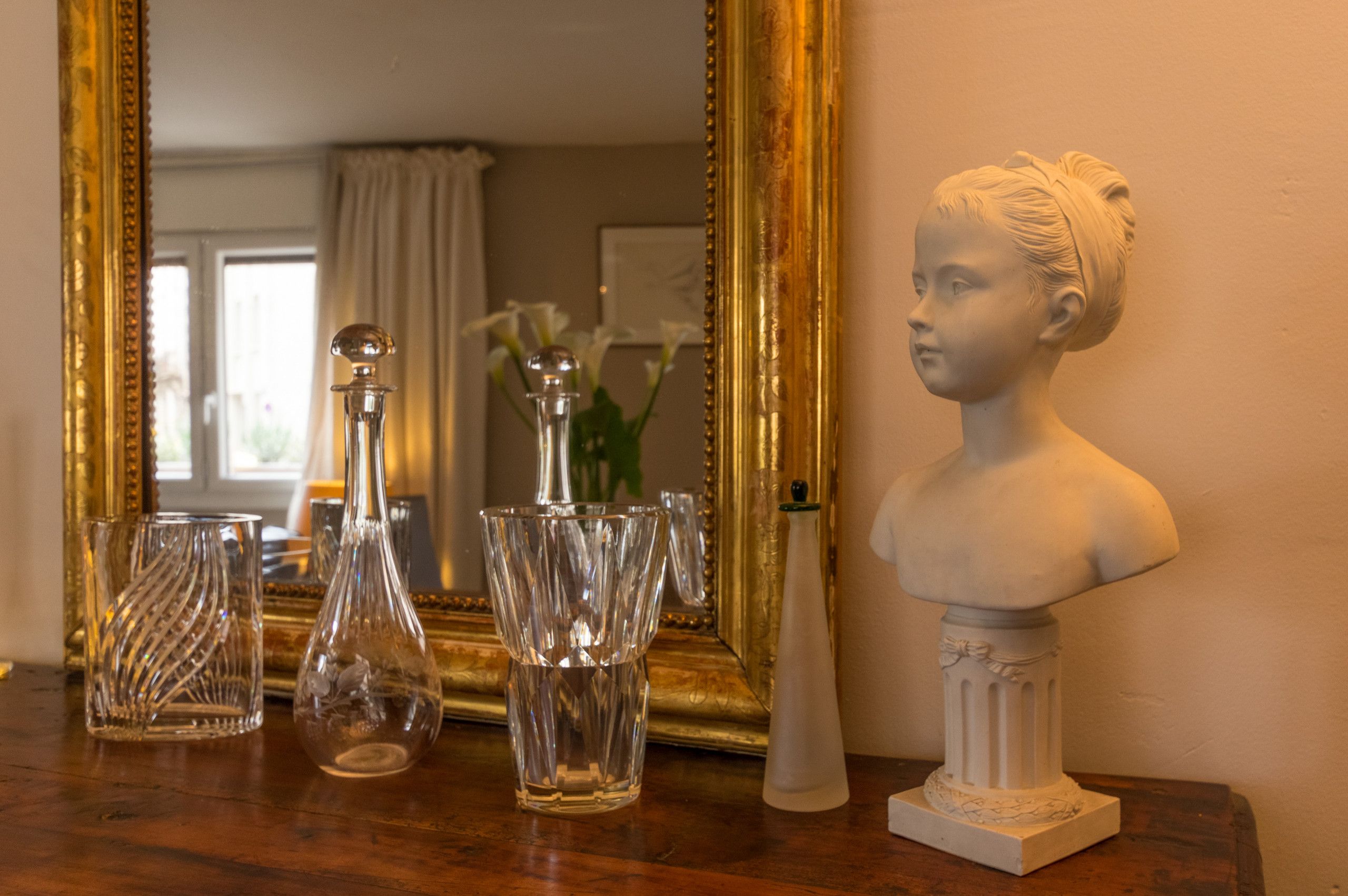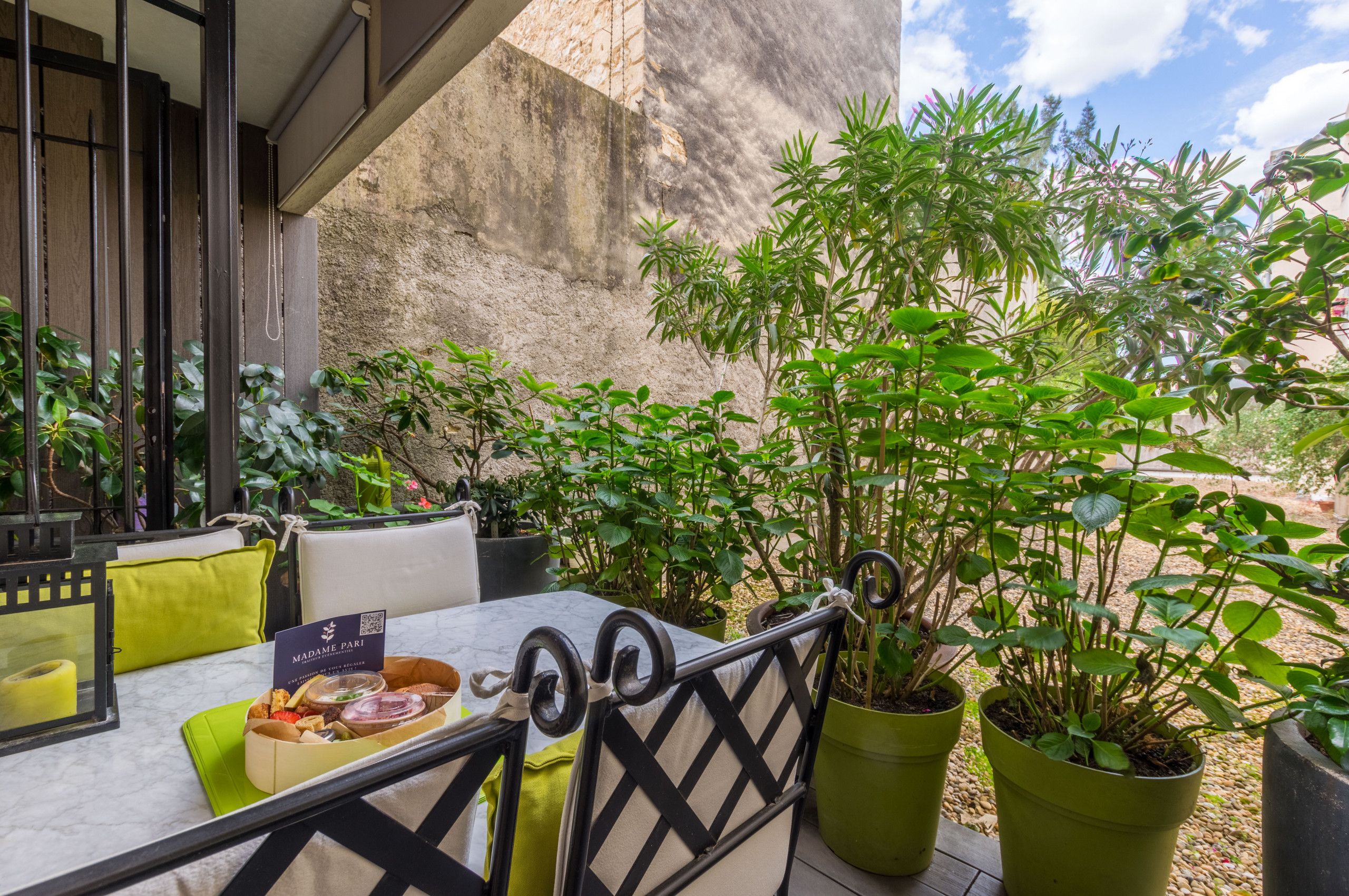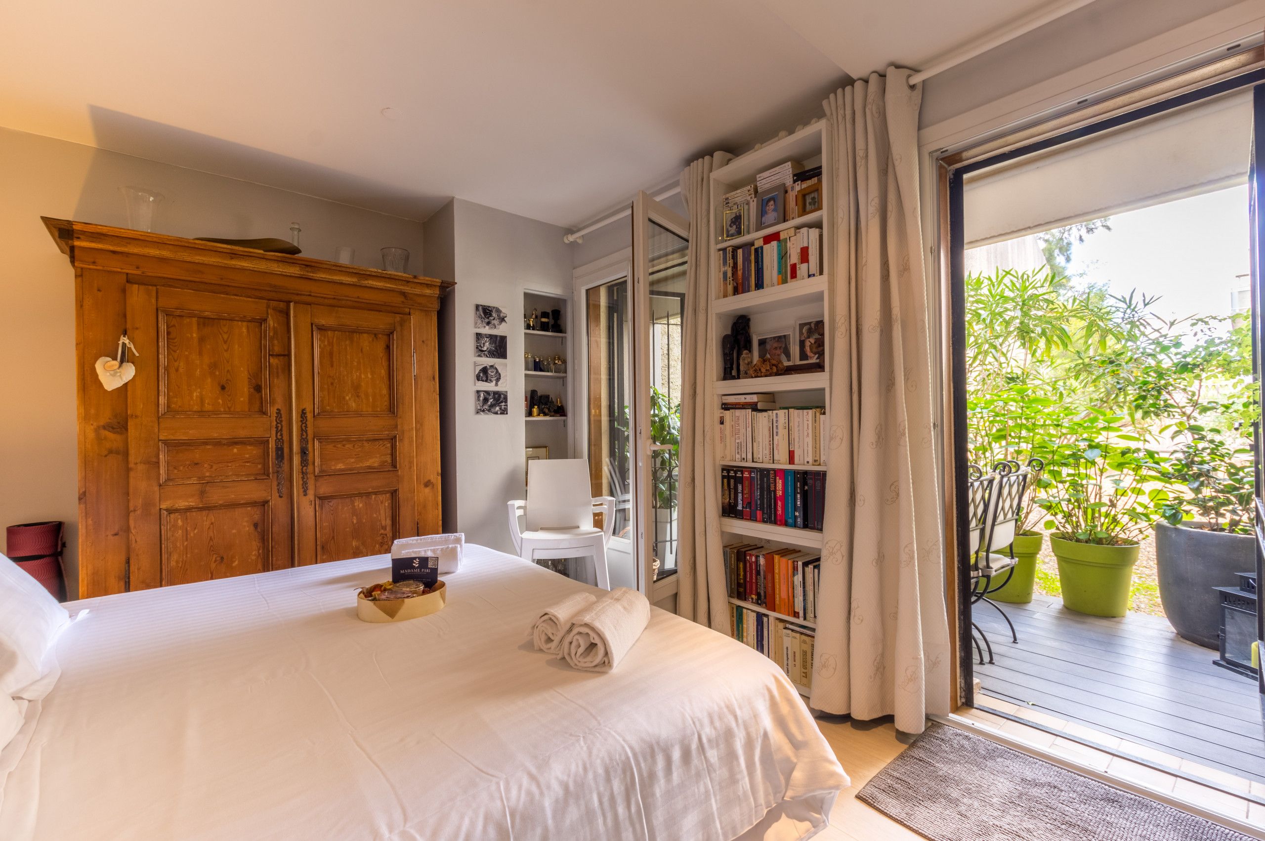 Relax with a glass of wine amongst the lush foliage in this home's pretty garden. Inside, you'll find more verdant plants, as well as paintings and statues lending an air of elegance to this apartment. If you don't fancy eating out, whip up a tasty cassoulet in the modern, grey-hued kitchen. This place is the perfect retreat for a couple, a solo traveller or even a business professional.