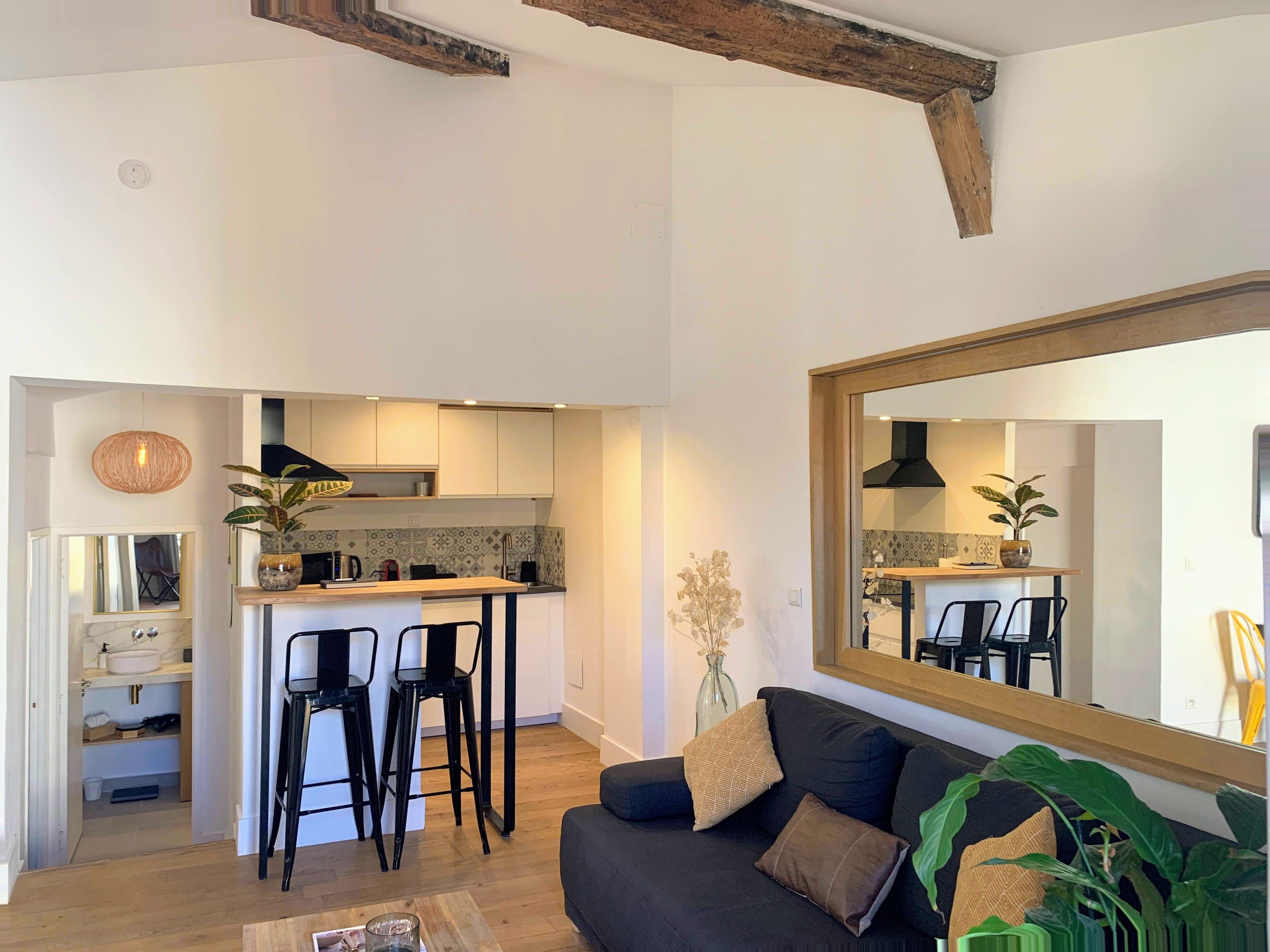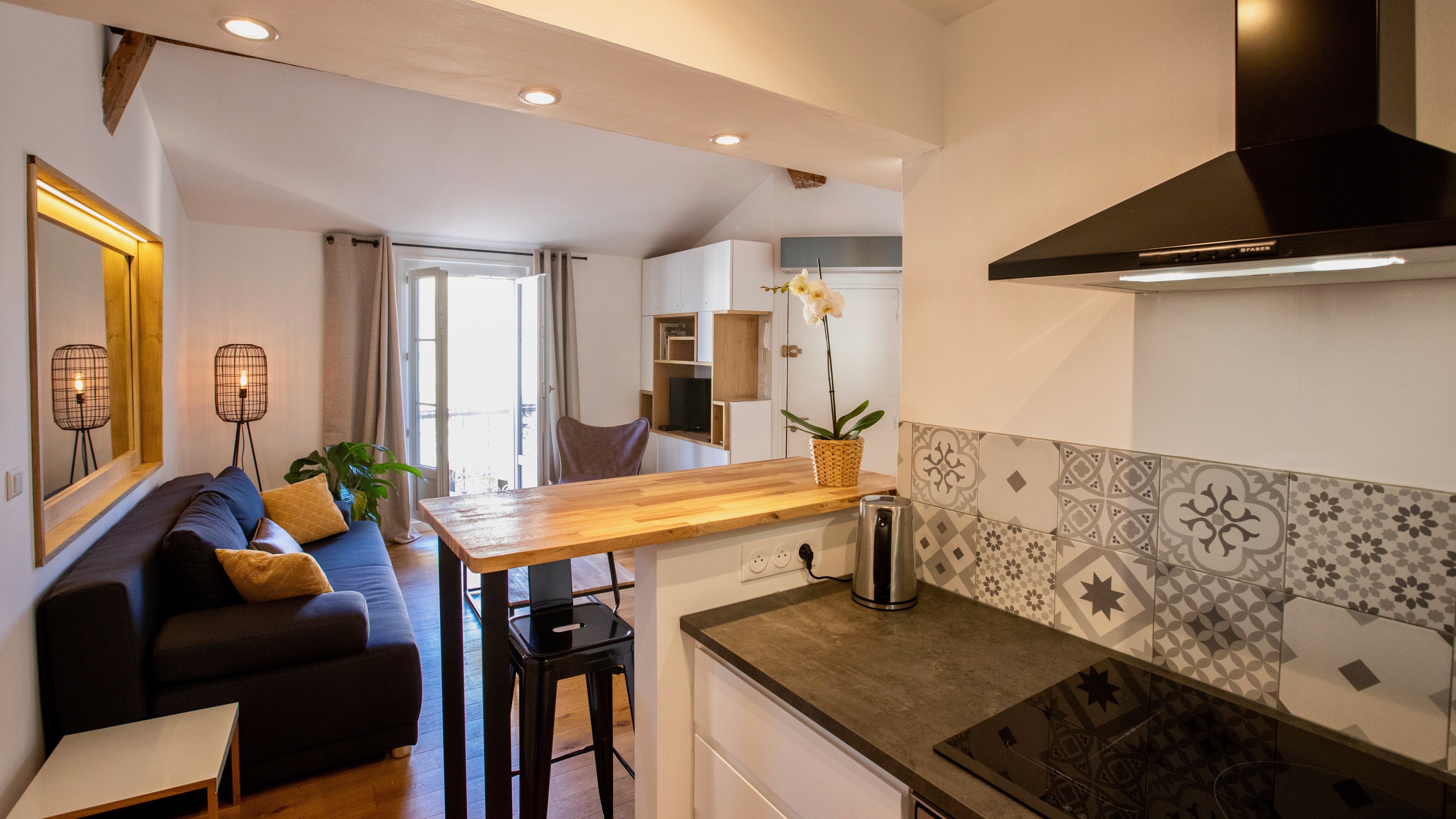 The sociable space is painted all-white, with a smart wood floor and a pretty well-equipped kitchen. There's a Juliet balcony in the living room and a sofa bed which boosts the capacity to up to four guests. A comfortable, stylish home in one of the best locations in town, we think you'll love it. And they do say that the best way to experience Montpellier is to get lost in it, so feel free to wander the streets and discover the wonderful restaurants and open-air music performances on your doorstep.