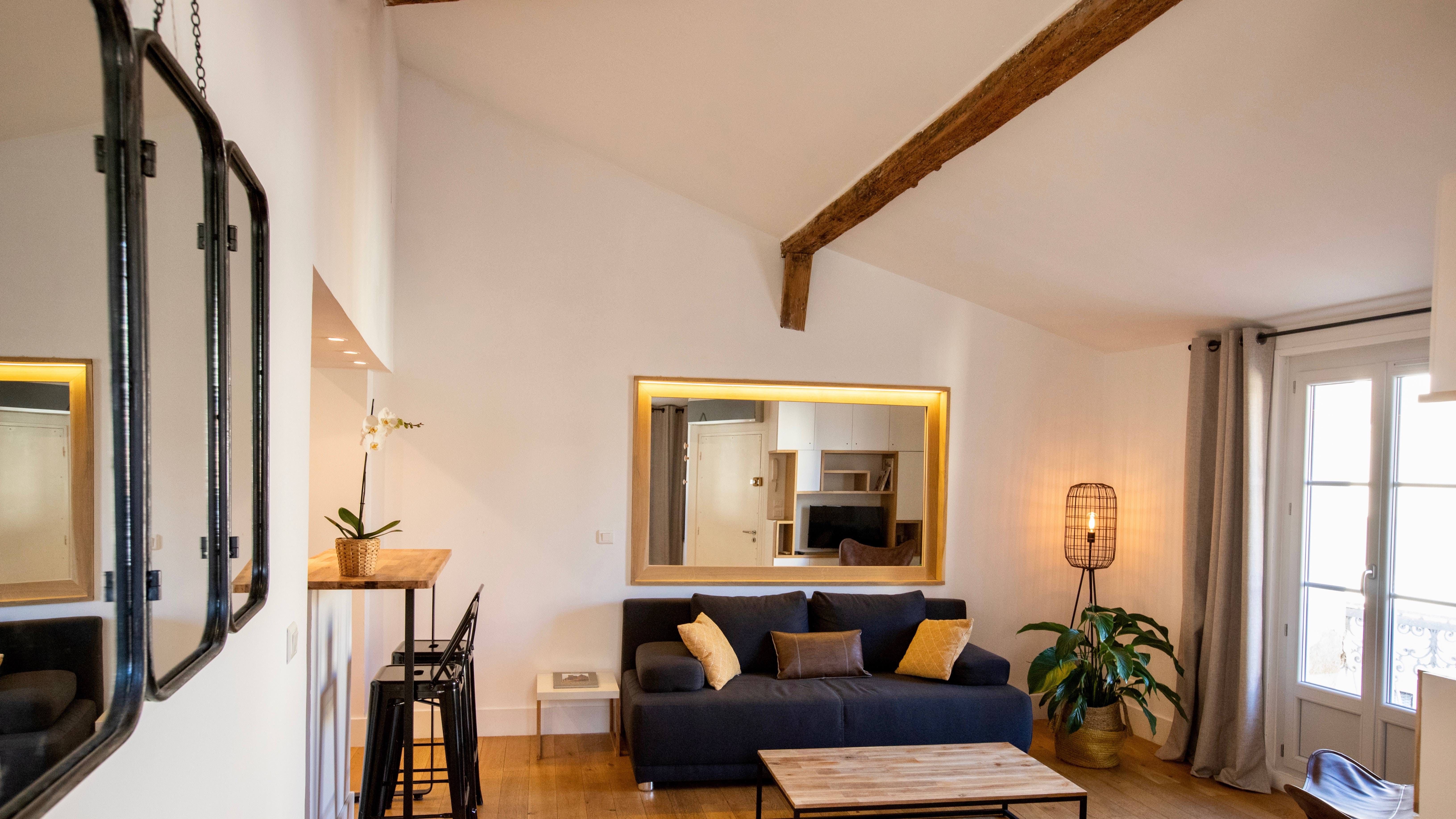 Tucked away in the ancient heart of Montpellier, this sophisticated home blends its period features with modern styling. Set in among the warren of narrow streets, close to the opera, the cathedral and museums, it's a surprisingly quiet retreat. Here you'll climb the stairs to your apartment, set within a traditional building dating from the 1700s. And although it's been thoroughly modernised, you'll still see plenty of character details like high ceilings, exposed beams and pretty windows.