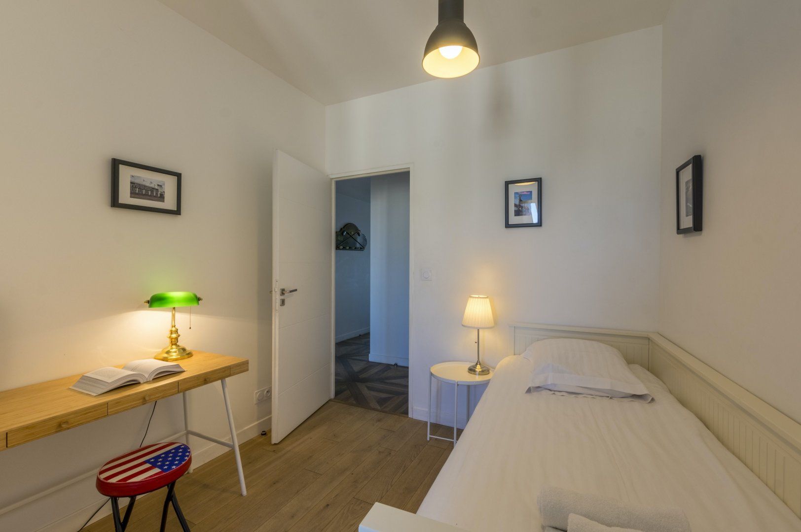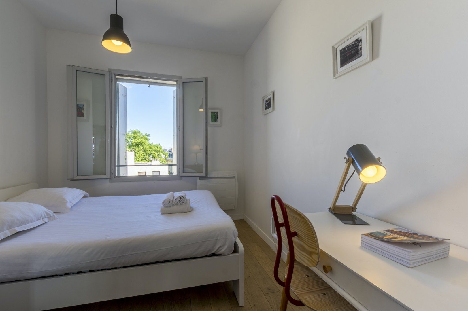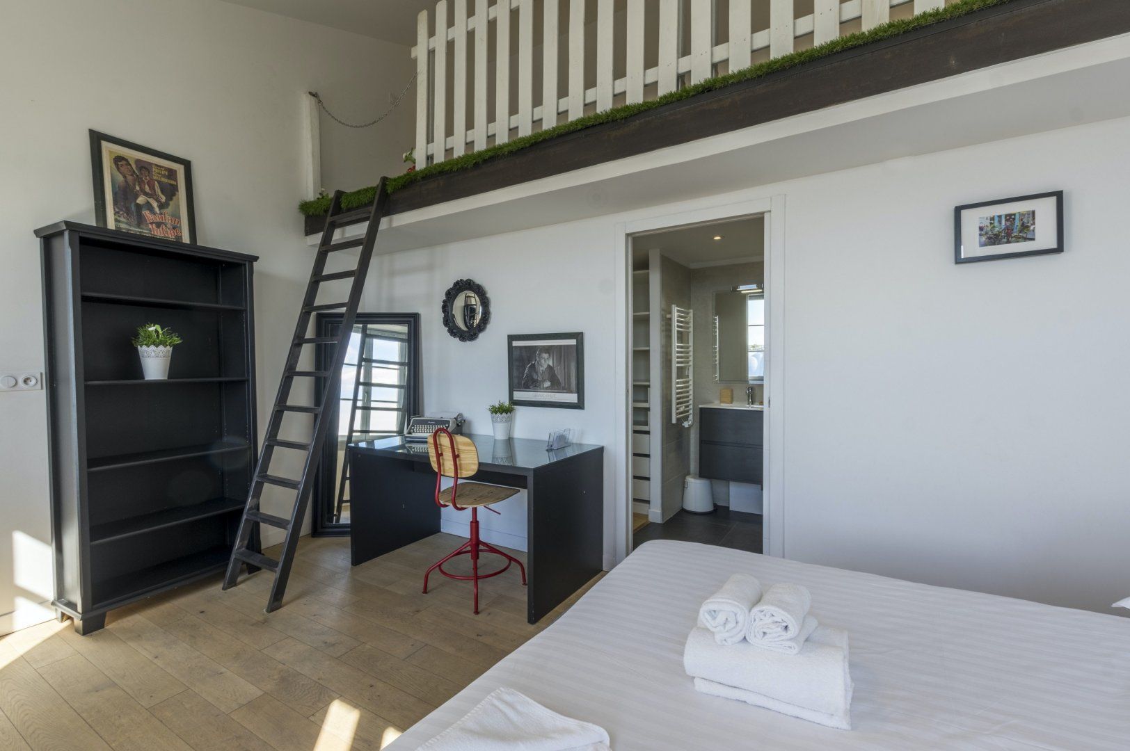 We recommend you start your day by throwing open the doors to your Juliet balcony and letting the gorgeous light shine into your beautiful lounge area. Enjoy a glass of freshly squeezed OJ while you recline on the sofa, and discuss your daily itinerary. Cook up a delicious French breakfast of crepes and coffee and tuck in all together around your smart breakfast bar, and head out for a busy day of exploring and adventuring, with plenty to see on your doorstep. When you return, have a soak in your lush bathtub, or write up some postcards to send home on your quaint desk, complete with a vintage typewriter. Then fall into your big comfy double bed, ready to do it all again the next day.