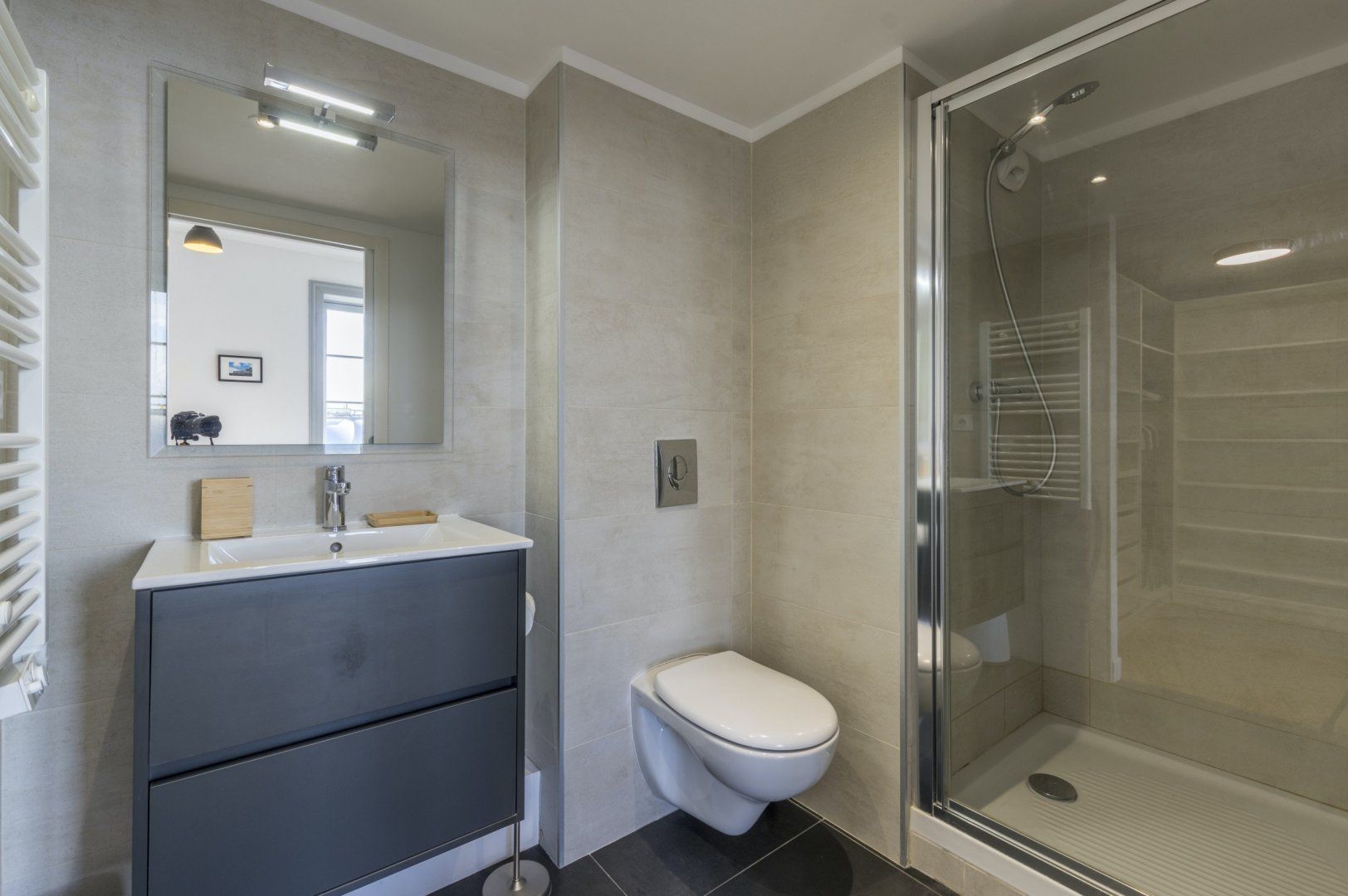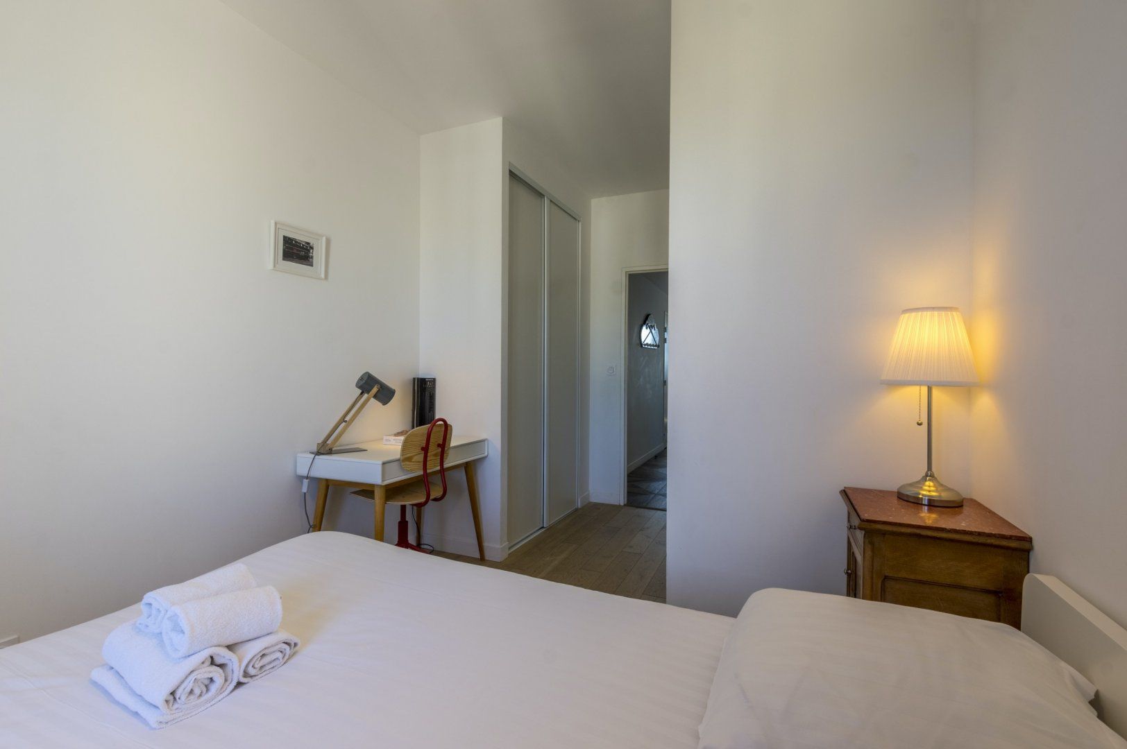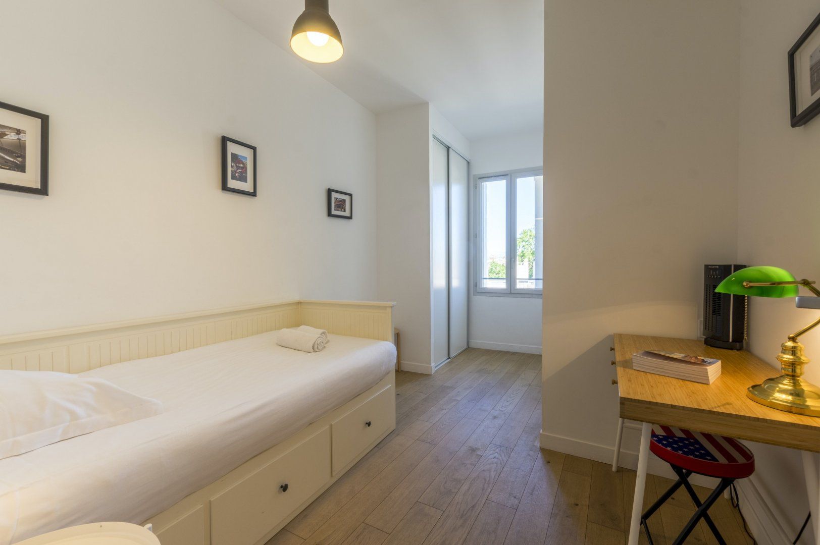 We recommend you start your day by throwing open the doors to your Juliet balcony and letting the gorgeous light shine into your beautiful lounge area. Enjoy a glass of freshly squeezed OJ while you recline on the sofa, and discuss your daily itinerary. Cook up a delicious French breakfast of crepes and coffee and tuck in all together around your smart breakfast bar, and head out for a busy day of exploring and adventuring, with plenty to see on your doorstep. When you return, have a soak in your lush bathtub, or write up some postcards to send home on your quaint desk, complete with a vintage typewriter. Then fall into your big comfy double bed, ready to do it all again the next day.
