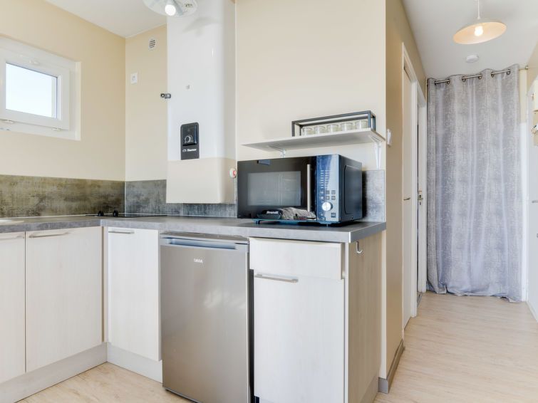 2-room apartment 26 m2 on 3rd floor. Comfortable furnishings: living/dining room with 1 double sofabed (140 cm, length 190 cm), TV and flat screen. Exit to the balcony. 1 room with 1 french bed (1 x 140 cm, length 190 cm). Kitchenette (2 ceramic glass hob hotplates, combination microwave).