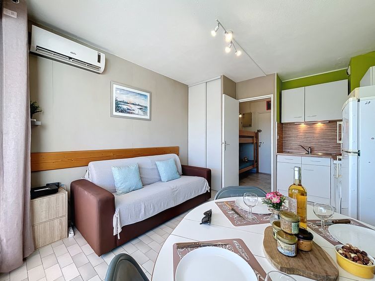 "Le Santa Maria", 1-room studio 20 m2 on 2nd floor. Object suitable for 2 adults + 2 children. Living/sleeping room with 1 double sofabed (140 cm, length 190 cm), TV (flat screen). Exit to the balcony. Sleeping alcove with 1 x 2 bunk beds (90 cm, length 190 cm). Kitchenette (dishwasher, 2 ceramic glass hob hotplates, toaster, kettle, microwave, freezer, electric coffee machine, Capsules for coffee machine (Senseo) extra).