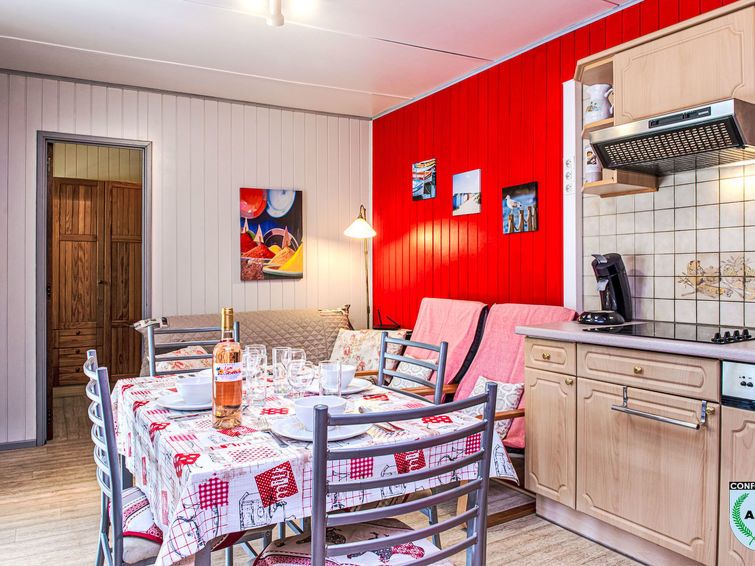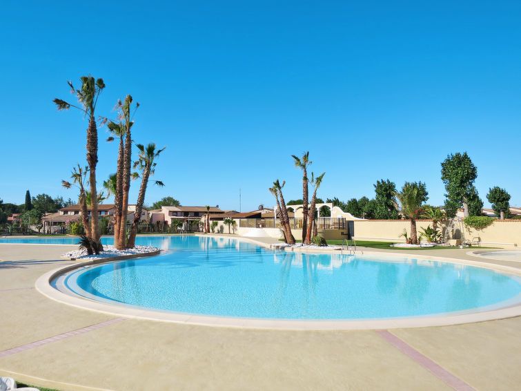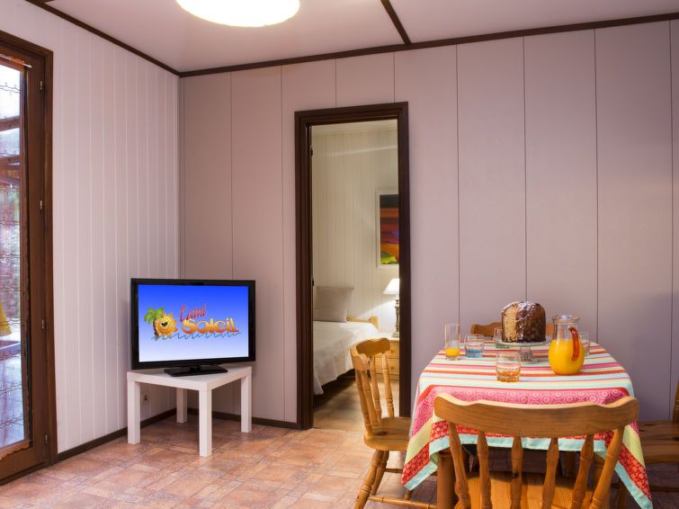 "Domaine des Tamaris", 3-room terraced house 35 m2. Simple and practical furnishings: living/dining room with dining table, TV and electric heating. 1 room with 1 french bed. 1 room with 2 sleeping facilities. Kitchenette (4 hot plates, microwave, electric coffee machine). Bath/WC or shower/WC.
