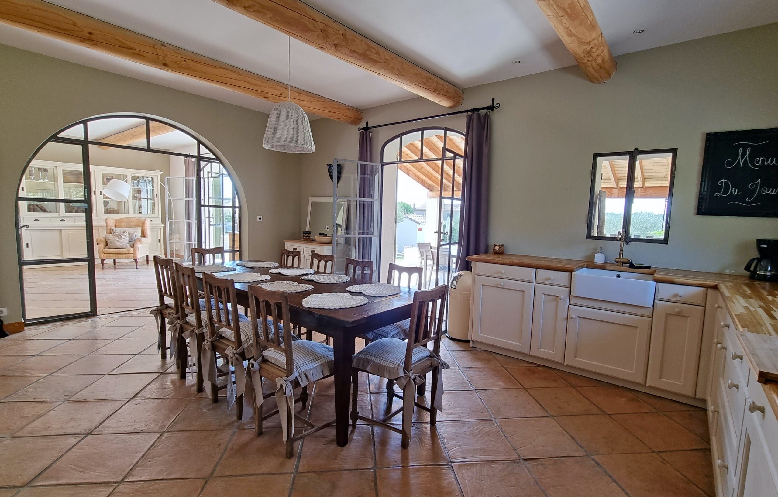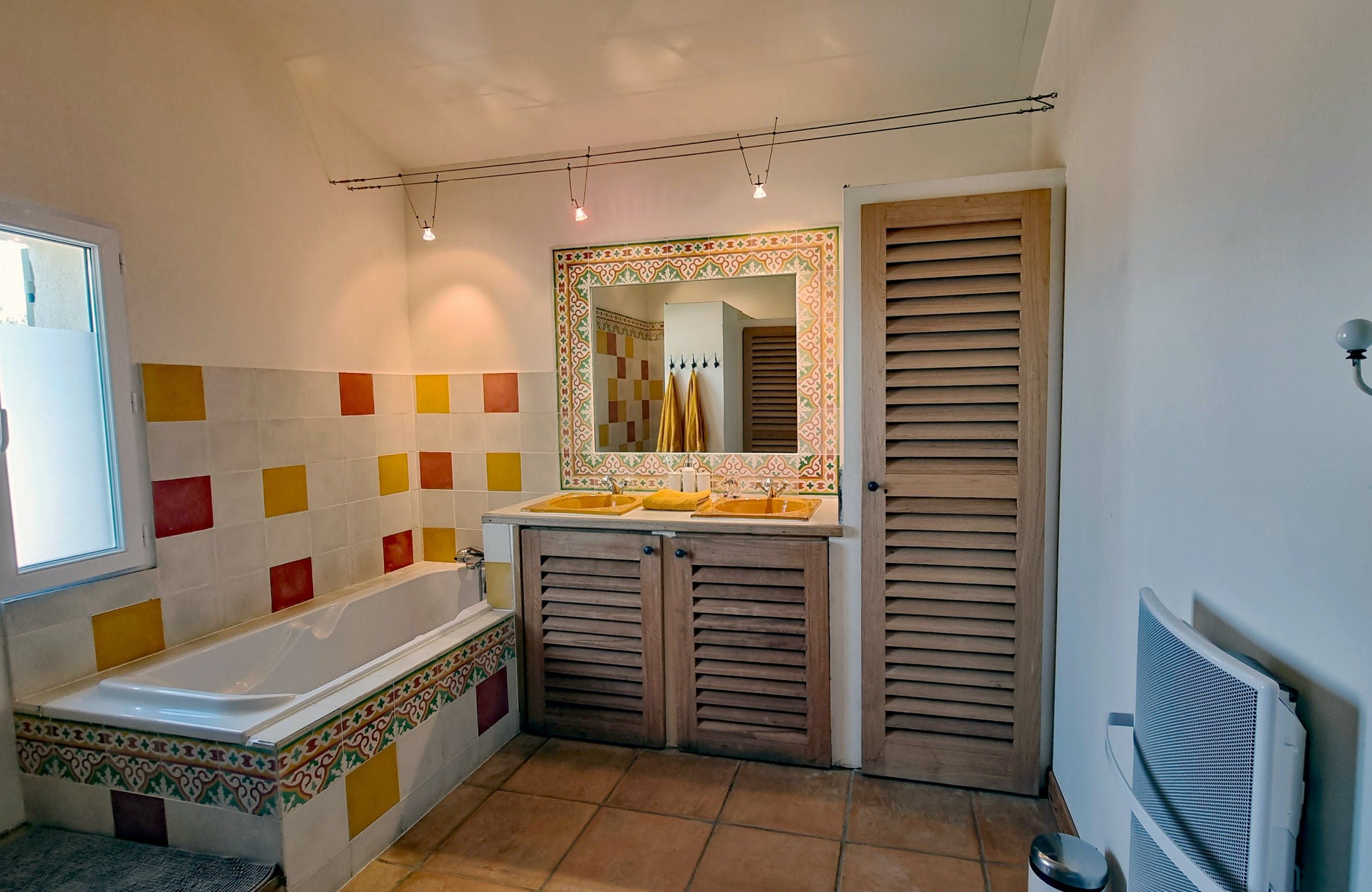 Experience a luxurious holiday in this stunning villa situated in the picturesque village of Saint-Quentin-la-Poterie, Gard. Perfect for families with children and pets, this villa boasts a private and fenced garden of 3000 square meters providing ample space to relax. As you enter, the stylish and modern kitchen greets you, fully equipped with all the utensils needed to prepare delicious meals. The beautiful living room is tastefully decorated and offers a comfortable seating area. Upstairs, four bedrooms provide excellent beds for a comfortable night's sleep. Three bedrooms feature king-size beds while the fourth has a bunk bed ideal for families with children. Two bathrooms offer ample space to get ready in the morning. The standout feature of this villa is its large terrace with luxurious lounge set perfect for enjoying an evening drink or soaking up the sun during the day. The villa also features a huge covered terrace with a dining table, beautiful lawn perfect for playing games with children or pets, and a private pool to cool off on hot summer days.
