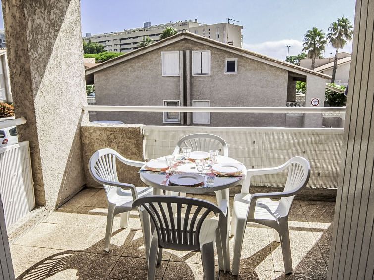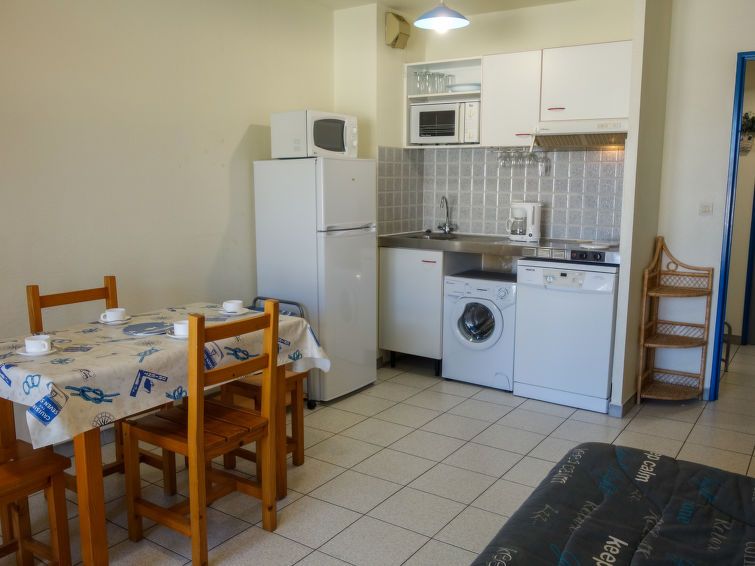 2-room apartment 35 m2 on 1st floor. Living/dining room with 1 double sofabed and TV (flat screen). Exit to the terrace. 1 room with 1 french bed (140 cm, length 190 cm). Kitchenette (2 hot plates, mini-oven, dishwasher, microwave, freezer, electric coffee machine). Bath/WC. Terrace 10 m2, roofed, east facing position.