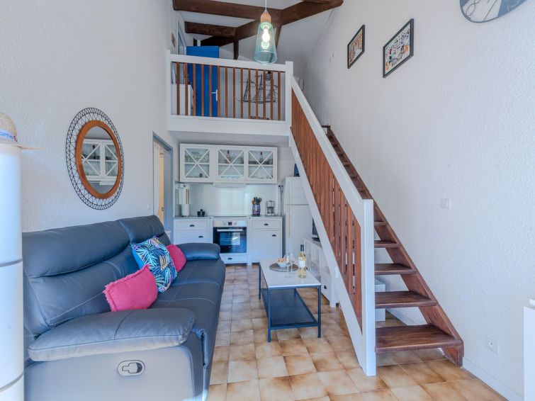 3-room apartment 38 m2 on 2 levels on 2nd floor. Beautiful furnishings: living/dining room with TV (flat screen), air conditioning. Exit to the loggia. 1 room with 1 french bed (140 cm, length 190 cm). Kitchenette (oven, dishwasher, 3 induction hot plates, toaster, kettle, microwave, freezer, electric coffee machine, Capsules for coffee machine (senseo) extra).