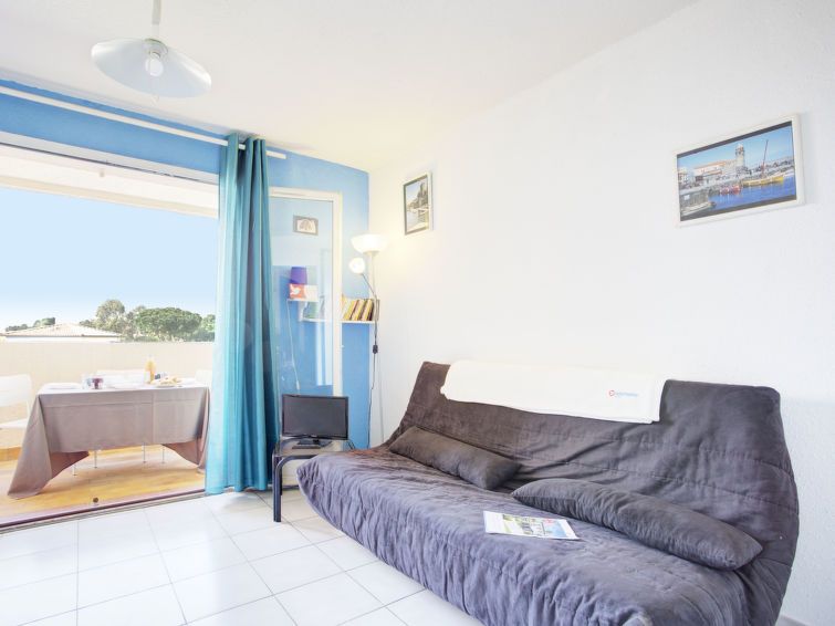 1-room studio 22 m2 on 2nd floor. Practical furnishings: entrance hall with 1 x 2 bunk beds (90 cm, length 190 cm), fan. Living/dining room with 1 double sofabed (1 x 130 cm, length 190 cm), TV (flat screen). Exit to the balcony. Kitchenette (mini-oven, oven, 2 ceramic glass hob hotplates, microwave, electric coffee machine).