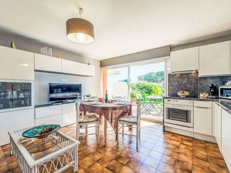 2-room apartment 38 m2, on the ground floor. Living/dining room with 1 double sofabed (140 cm, length 190 cm), TV, flat screen and air conditioning. 1 room with 1 pull-out bed (2 x 90 cm, length 190 cm). Kitchenette (oven, 3 induction hot plates, toaster, microwave, freezer, electric coffee machine, Capsules for coffee machine (senseo) extra).