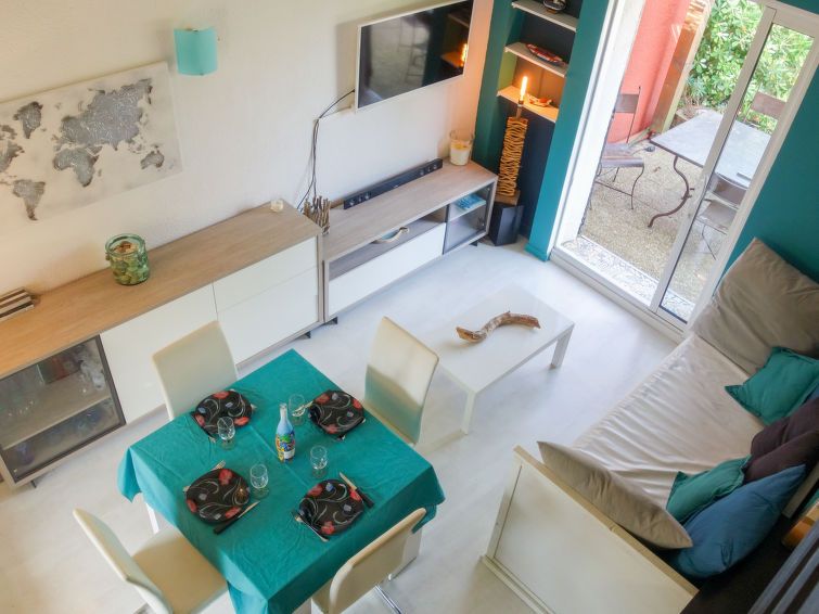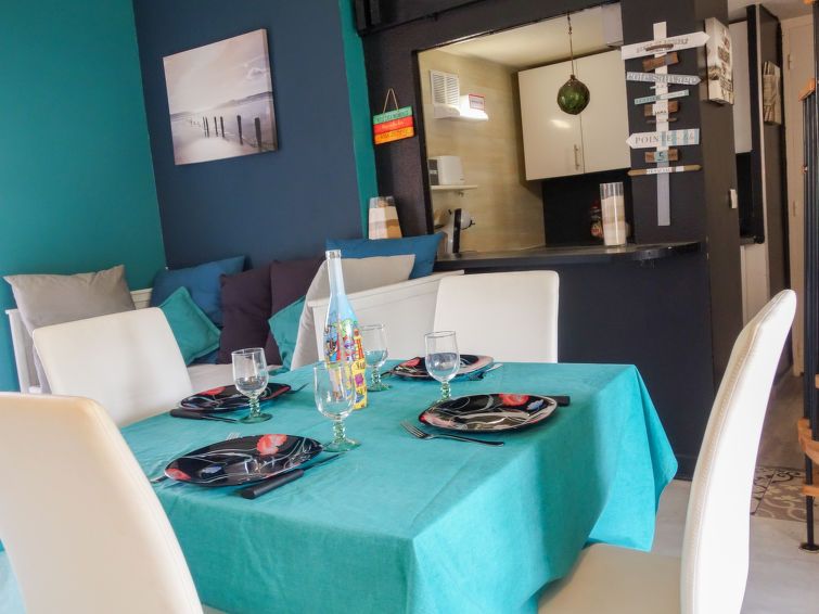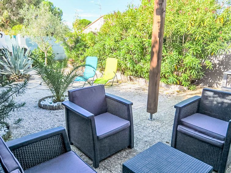 Well-equipped accommodation (air conditioning, dishwasher, etc.) Bedroom with 2 single beds on the ground floor and bedroom for 2 on the mezzanine with access by a spiral staircase. Shower room with wc and small shower (don't be overweight). Some outdoor relax chairs and the access gate deserve to be changed and the Mediterranean plants in the garden can limit children in terms of play and safety because the leaves are hard and prickly.