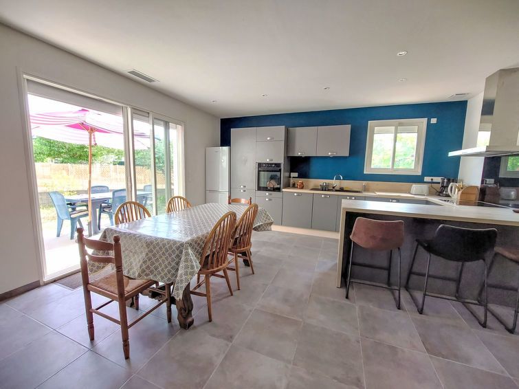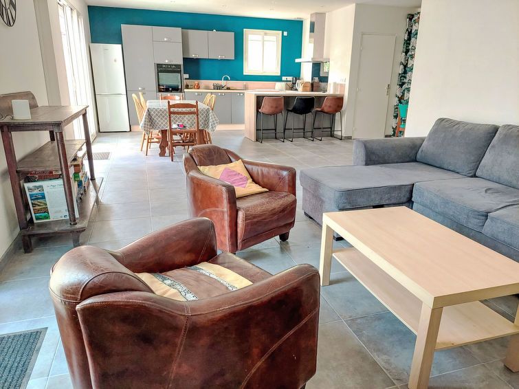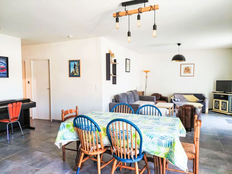 4-room terraced house 90 m2. Comfortable furnishings: living/dining room with TV and air conditioning. Exit to the terrace. 2 rooms, each room with 1 french bed (140 cm, length 190 cm), air conditioning. 1 small room with 1 pull-out bed (2 pers. 2 x 90 cm, length 190 cm), air conditioning.