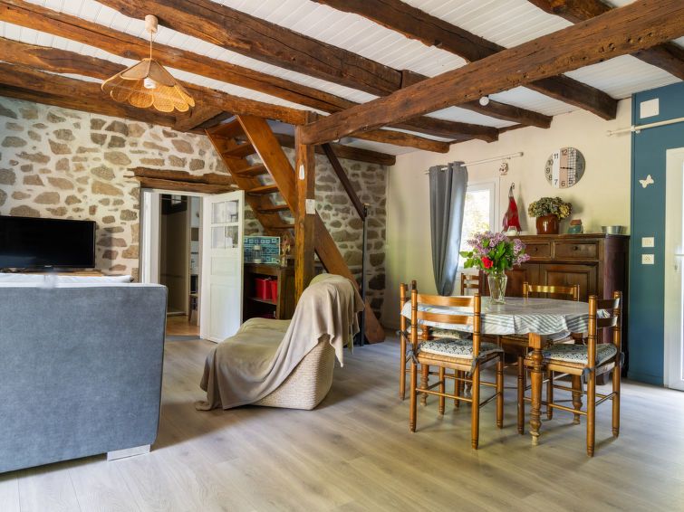 3-room house 80 m2 on 2 levels. Beautiful furnishings: living/dining room with Scandinavian wood stove, dining table and TV (flat screen). Exit to the garden, to the balcony. 1 room with 1 french bed (140 cm, length 190 cm). Open kitchen (mini-oven, 4 gas rings, toaster, kettle, microwave, freezer, electric coffee machine, Capsules for coffee machine (Senseo) extra).