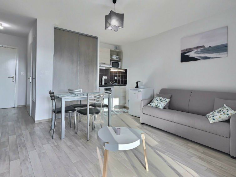 "Résidence La Dune ST2", 1-room studio 25 m2. Practical and beautiful furnishings: living/sleeping room with 1 double sofabed (1 x 140 cm, length 190 cm), TV (flat screen). Kitchenette (2 hot plates, dishwasher, toaster, kettle, microwave, electric coffee machine). Shower/WC. Heating.