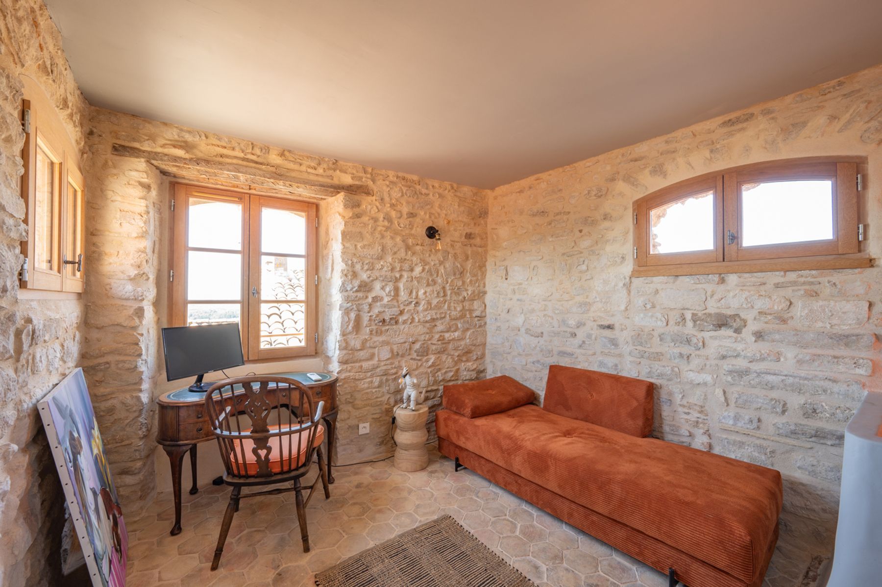 Tucked into the winding lanes of a medieval village, this villa offers a stay that feels both steeped in history and warmly contemporary. Over three centuries old, the house has been carefully restored with modern touches complimenting original details. Climb the pigeon tower to find a converted study that doubles as an extra bedroom, or cook up a feast in the kitchen that opens onto a flower-filled terrace with a pool and space for long summer meals. With Cévennes trails nearby, Uzès within easy reach, and vineyards all around, it’s a home made for slow, memorable days.