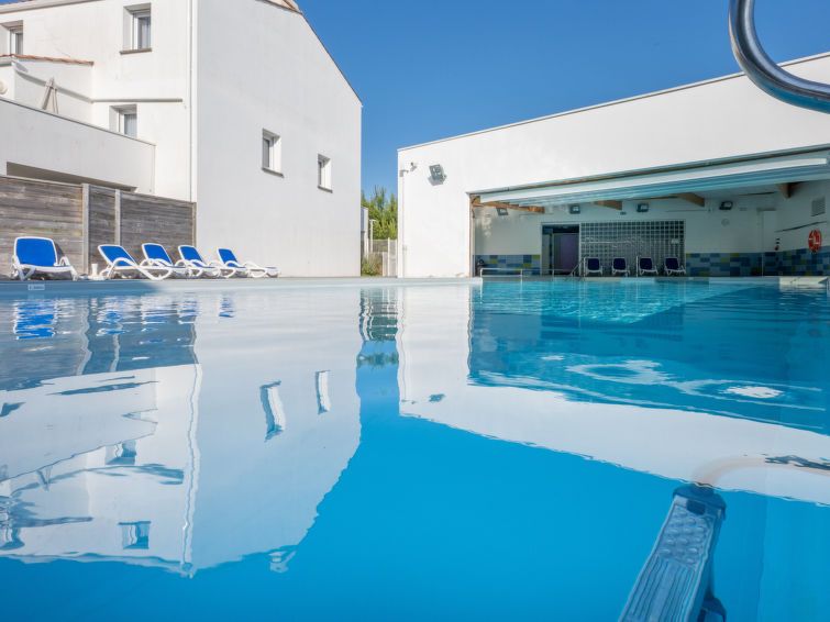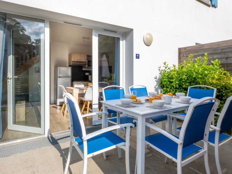 "Le Domaine des Pins", 3-room apartment 47 m2 on 2 levels. Modern furnishings: living/sleeping room with 1 bed, 1 double sofabed, dining table and satellite TV (flat screen). Exit to the balcony. Open kitchen (dishwasher, 4 ceramic glass hob hotplates, toaster, kettle, electric coffee machine, combination microwave).