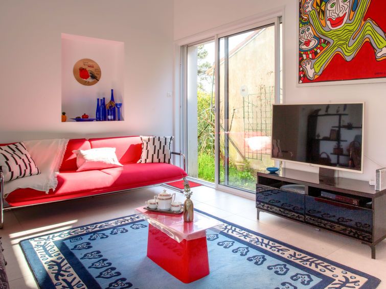 "Le Paradou", 3-room house 70 m2, south-west facing position. Modern and stylish furnishings: living/dining room with TV (flat screen). Exit to the terrace, west facing position. 2 rooms, each room with 1 french bed (1 x 140 cm, length 190 cm). Open kitchen (oven, dishwasher, 4 induction hot plates, toaster, kettle, electric coffee machine, Capsules for coffee machine (Nespresso) extra) with bar.