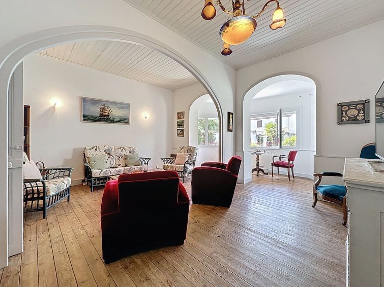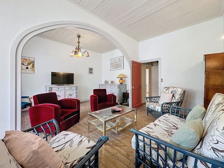 "Les Mouettes", 4-room terraced house 110 m2 on 2 levels, south facing position. Object suitable for 4 adults + 2 children. Rustic and cosy furnishings: large living/dining room with TV (flat screen). Kitchen (oven, dishwasher, 4 induction hot plates, toaster, kettle, microwave, electric coffee machine, Capsules for coffee machine (Nespresso) extra).