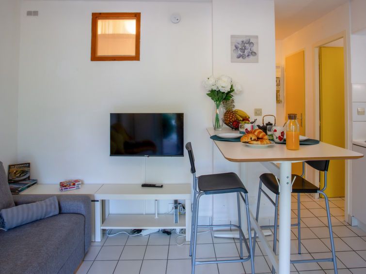 "Port Saint-Jacques", 2-room apartment 28 m2, west facing position. Simple furnishings: living room with TV (flat screen). Exit to the patio, south facing position and west facing position. 1 room with 1 french bed (1 x 140 cm, length 200 cm). Entrance hall with 1 x 2 bunk beds (80 cm, length 190 cm).