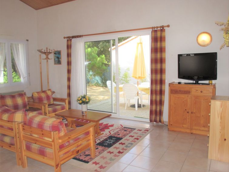 "Les Etrilles", 2-room house 68 m2 on 2 levels. Bright, practical and cosy furnishings: living room with open-hearth fireplace (only for decoration), satellite TV. Exit to the terrace. 1 room with 2 beds (80 cm, length 190 cm). Open kitchen (2 ceramic glass hob hotplates, microwave, freezer, electric coffee machine) with dining table.
