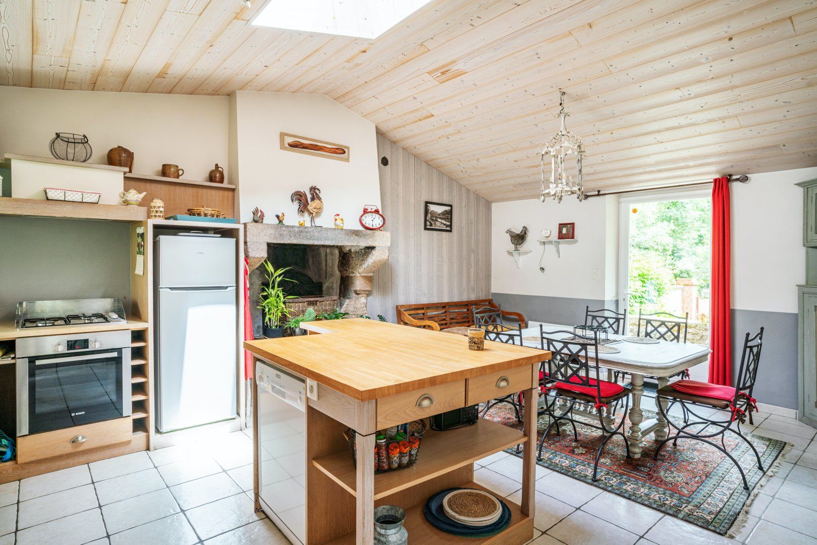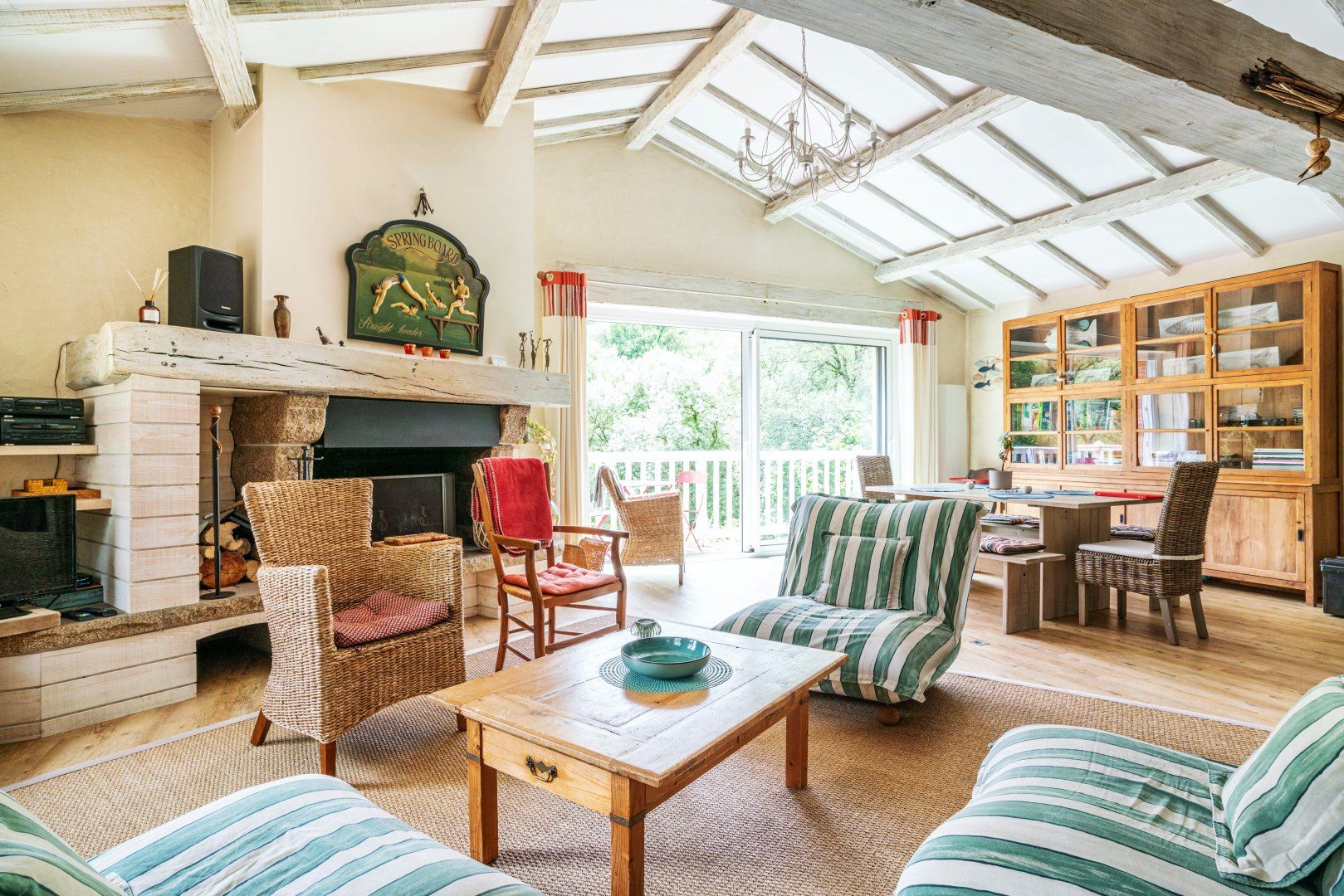 Nestled in the rolling countryside of Mortagne-sur-Sèvre and boasting a large, south-facing garden complete with gently bubbling brook running through it, the outdoor areas of this home strongly influence its interiors – which themselves exude the rustic old-world charm and light-dappled cosiness typical of rural France.
