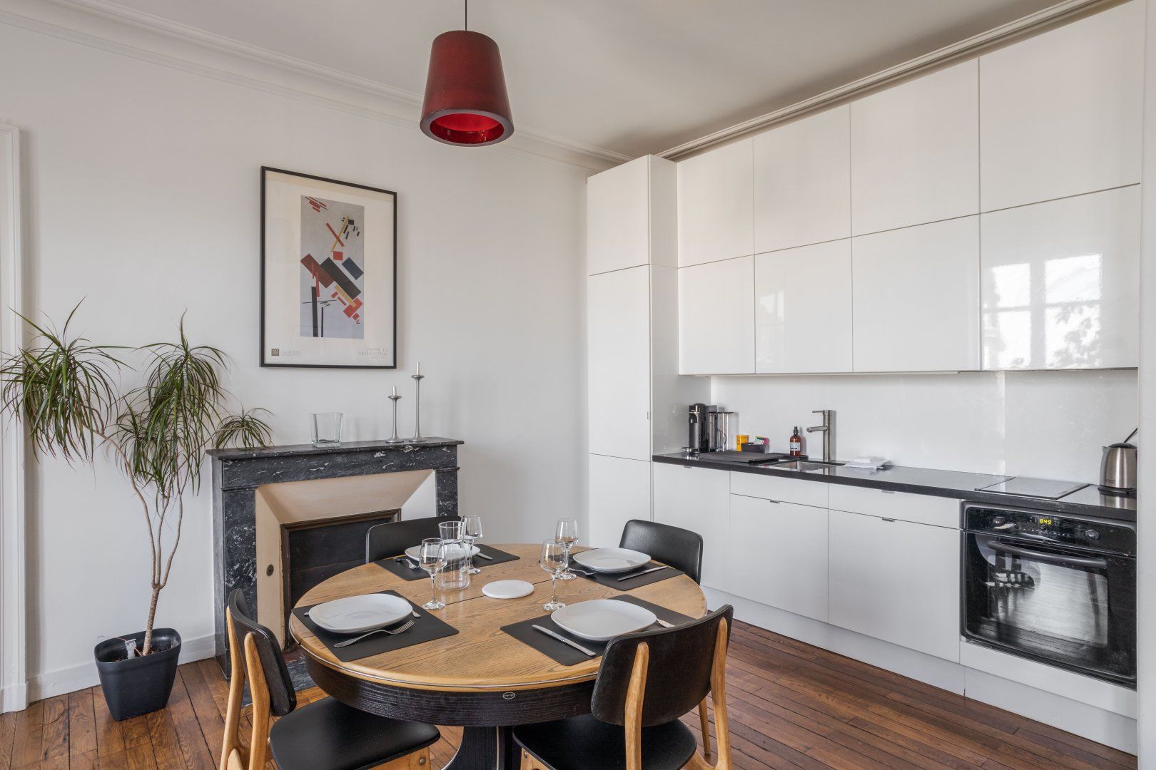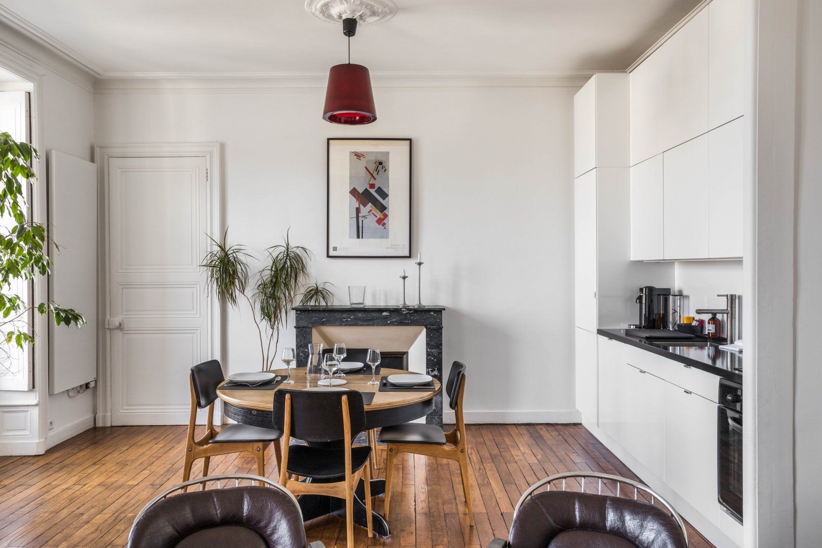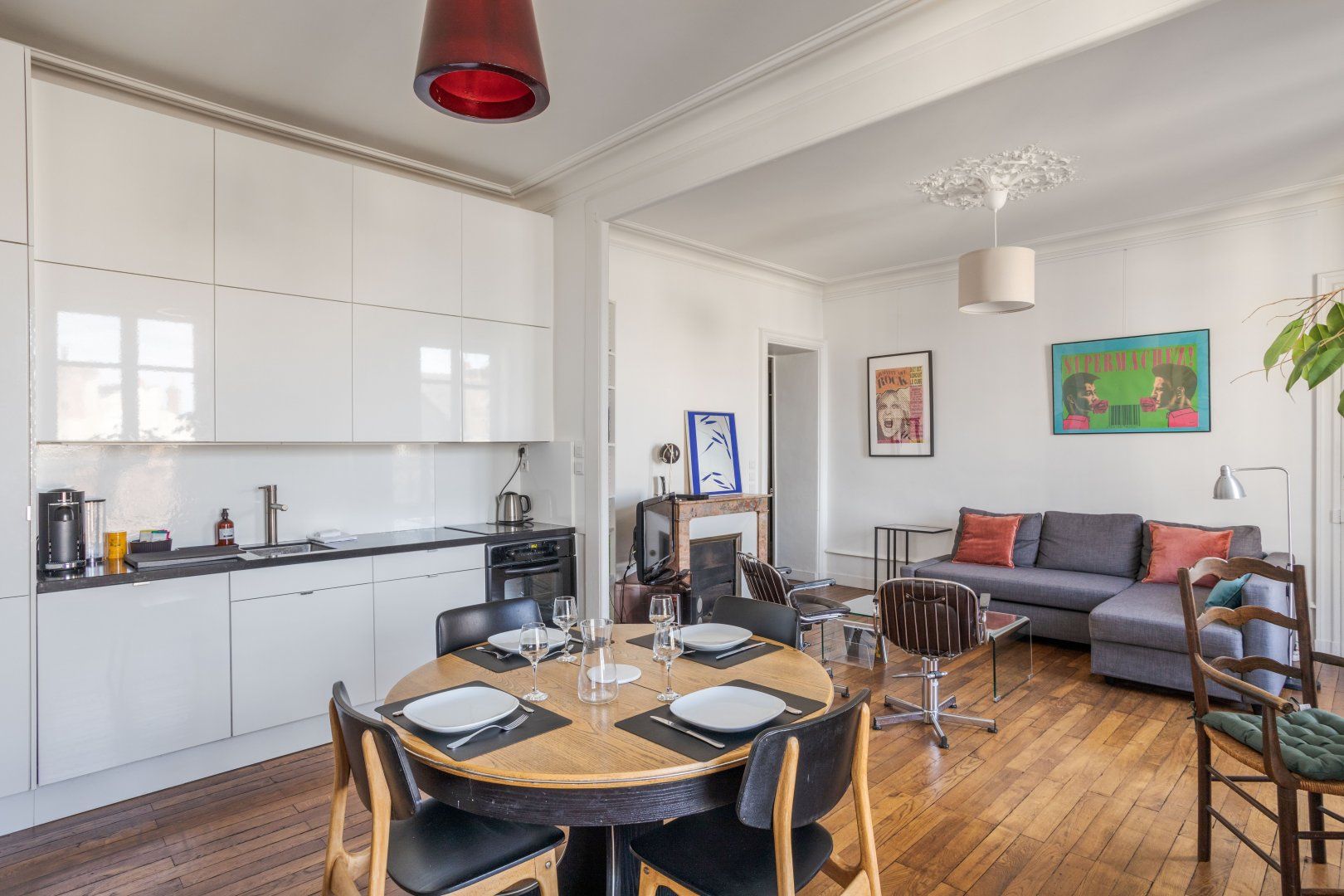 Stepping inside, the apartment has a Parisian feel running through it, with traditional wooden floorboards, ornate ceiling mouldings, and wrought-iron Juliet balconies. We love how your host has transformed the home with a modern aesthetic – from the marble fireplaces to the vibrant artworks, stylish furnishings and curated houseplants – it's the perfect open-plan space to return to after a day of exploring.