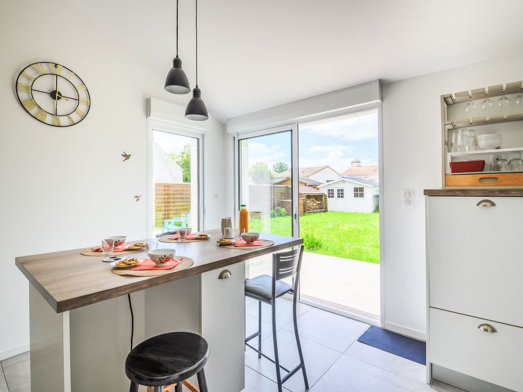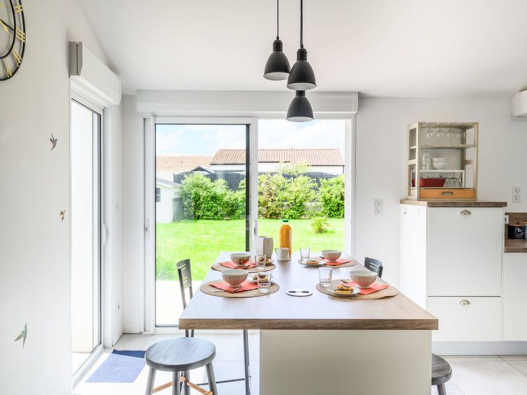 "3 pièces + mezzanine", 3-room house 115 m2. Renovated in 2023, very comfortable furnishings: living/dining room with Scandinavian wood stove (only for decoration), dining table, TV, digital TV and international TV channels (flat screen). Exit to the terrace. 1 room with Dressing room with 1 french bed (160 cm, length 200 cm), TV (flat screen).