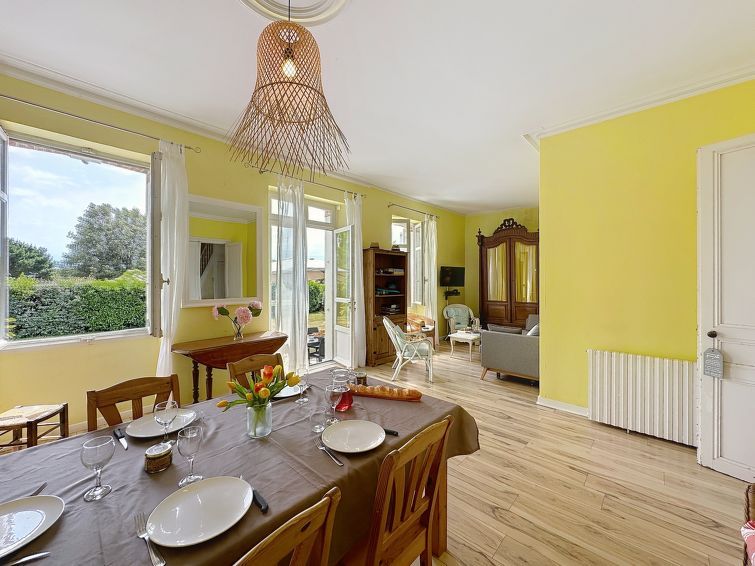 "Ker Madeleine", 5-room house 100 m2 on 2 levels, south facing position. Spacious: living/dining room with TV (flat screen). Exit to the terrace, south facing position. 1 room with 1 bed (90 cm, length 190 cm), 1 x 2 bunk beds (80 cm, length 190 cm). 1 room with 1 french bed (1 x 140 cm, length 190 cm).