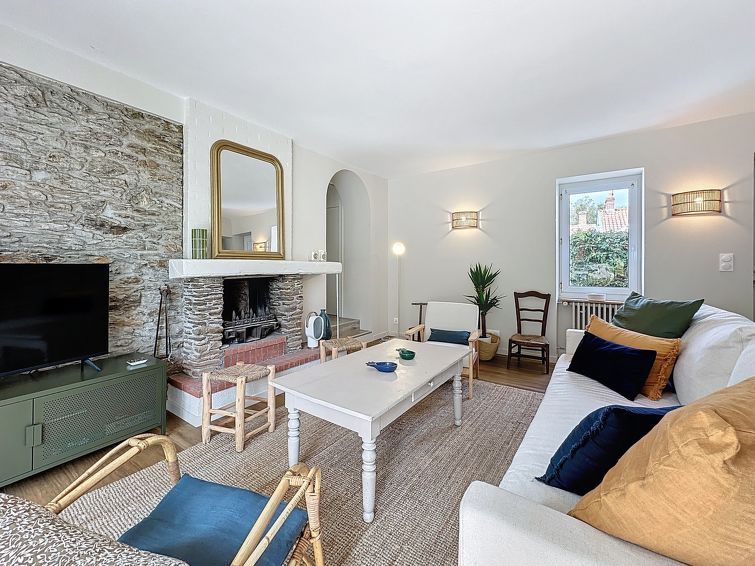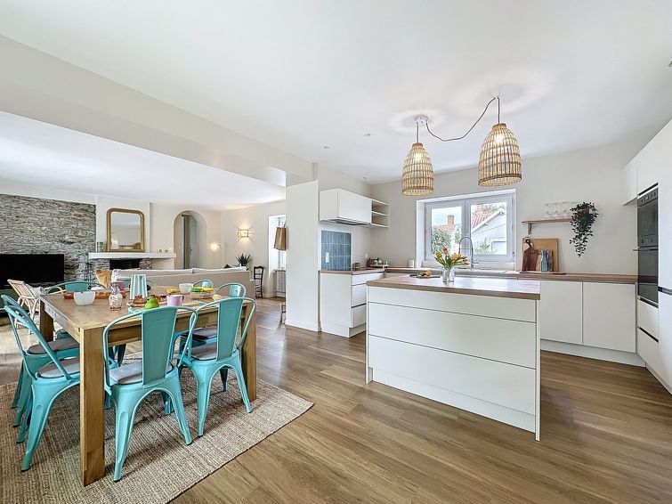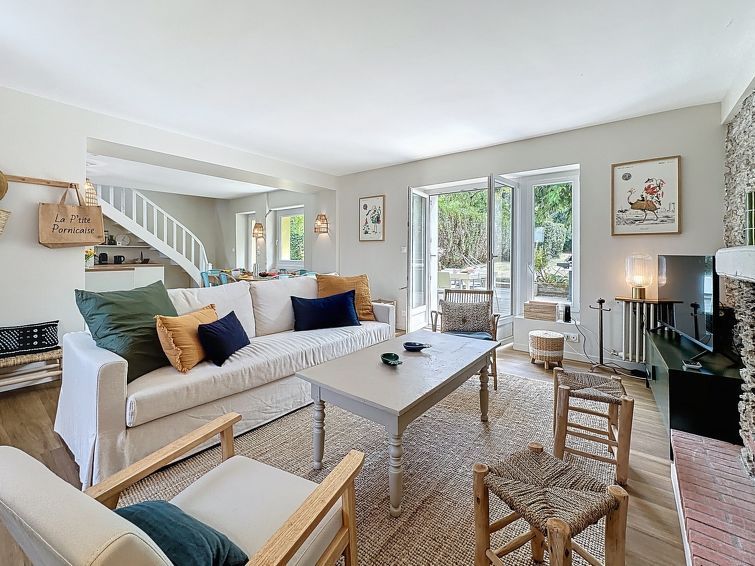 "La Nero", 5-room terraced house 120 m2 on 2 levels, south facing position. Modern furnishings: living/dining room with TV (flat screen). Exit to the terrace, south facing position. 1 room with Dressing room with 1 french bed (1 x 160 cm, length 200 cm). Exit to the garden, to the terrace, south facing position.