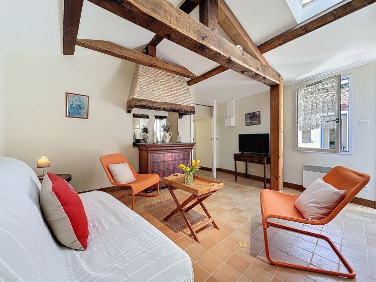 "Le Sandier Sud-Est", 2-room house 47 m2, south-east facing position. Simple and rustic furnishings: living/dining room with 1 double sofabed (1 x 140 cm, length 190 cm), TV (flat screen). 1 room with 1 french bed (1 x 160 cm, length 200 cm). Exit to the garden, south facing position.