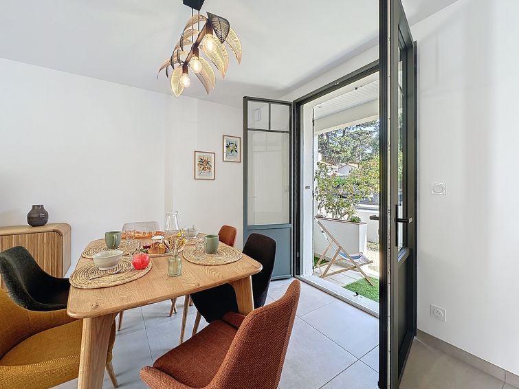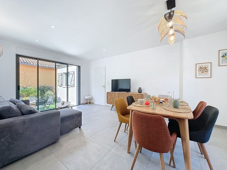 "Les Musardises", 4-room house 80 m2, south-east facing position. Renovated in 2025, modern furnishings: living/dining room with dining table and TV (flat screen). Exit to the terrace. 2 rooms, each room with 1 french bed (160 cm, length 200 cm). 1 room with 2 beds (90 cm, length 190 cm).
