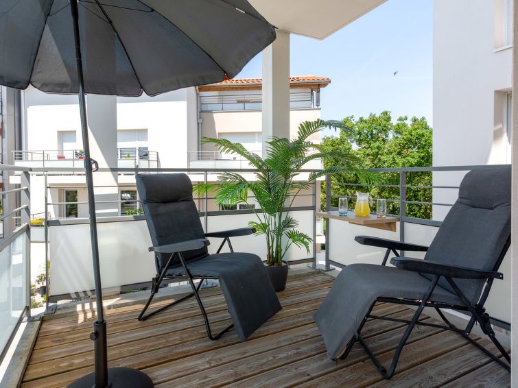 We spent a week's vacation in Pornic. The apartment is very modern, clean, and offers enough space for a family of three. The kitchen is very well equipped, the living room is comfortable, and the balcony is spacious. We felt comfortable. The city center is about 1.5 km away. We mainly used the car to get to the city and the beach. The contact with Interhome was very reliable. You can hear the main road a little.