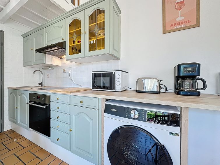 "Ker Ch'ti", 2-room terraced house 35 m2 on 2 levels, west facing position. Renovated in 2025, modern furnishings: living/dining room with 1 double sofabed (1 x 160 cm, length 200 cm), TV (flat screen). Exit to the terrace, west facing position. Open kitchen (oven, dishwasher, 4 induction hot plates, toaster, kettle, microwave, freezer, electric coffee machine).