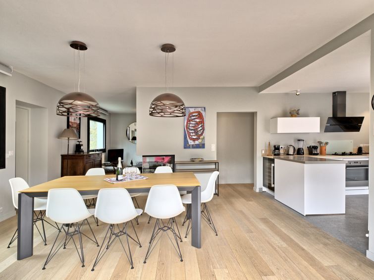 The three of us, including our dog, spent 10 wonderful days at the "Rose des Sables" house. The furnishings and wooden terrace are modern and very well-maintained. All kitchen utensils are provided (except for a casserole dish). It's worth mentioning that a third guest stays in the basement with their own bathroom (elevator from the living area). The property manager is very friendly, and the beaches within walking distance are wonderful, including the beautifully landscaped promenade above the beach leading to Pornichet town center (approx. 3 km).