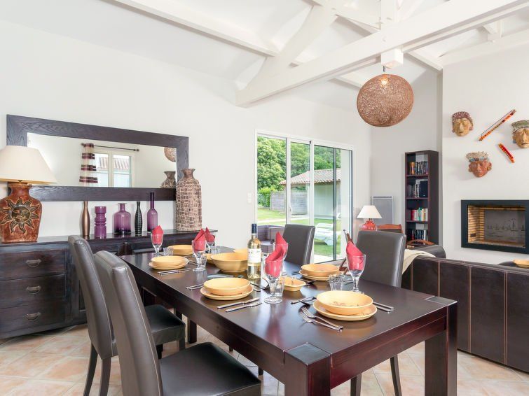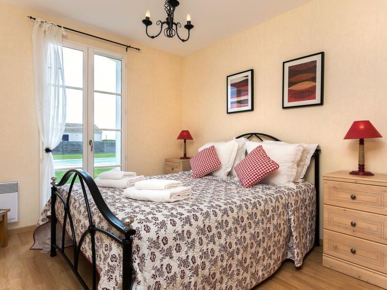 "Le Domaine de Fontenelles", 4-room villa 86 m2. Bright, beautiful furnishings: living/dining room with dining table and TV. Exit to the terrace. 3 rooms, each room with 2 sleeping facilities. Kitchenette (4 hot plates, oven, dishwasher, toaster, kettle, freezer, electric coffee machine).